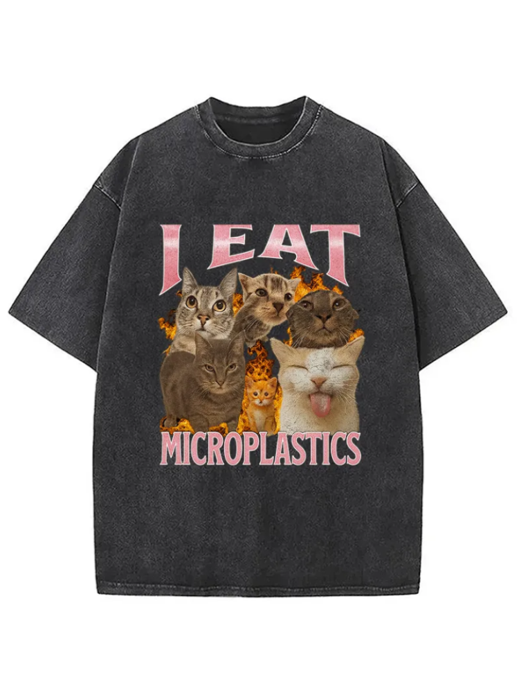 I Eat Microplastics Funny Cat Meme Washed T-shirt