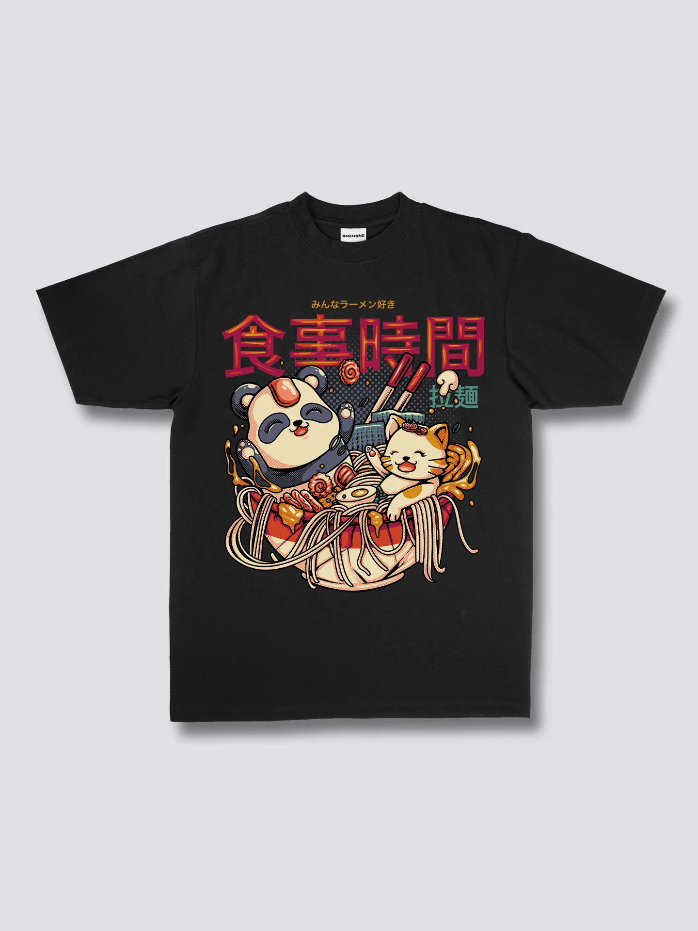 Cute Black Cat Eating Ramen Japan Classic T-shirt