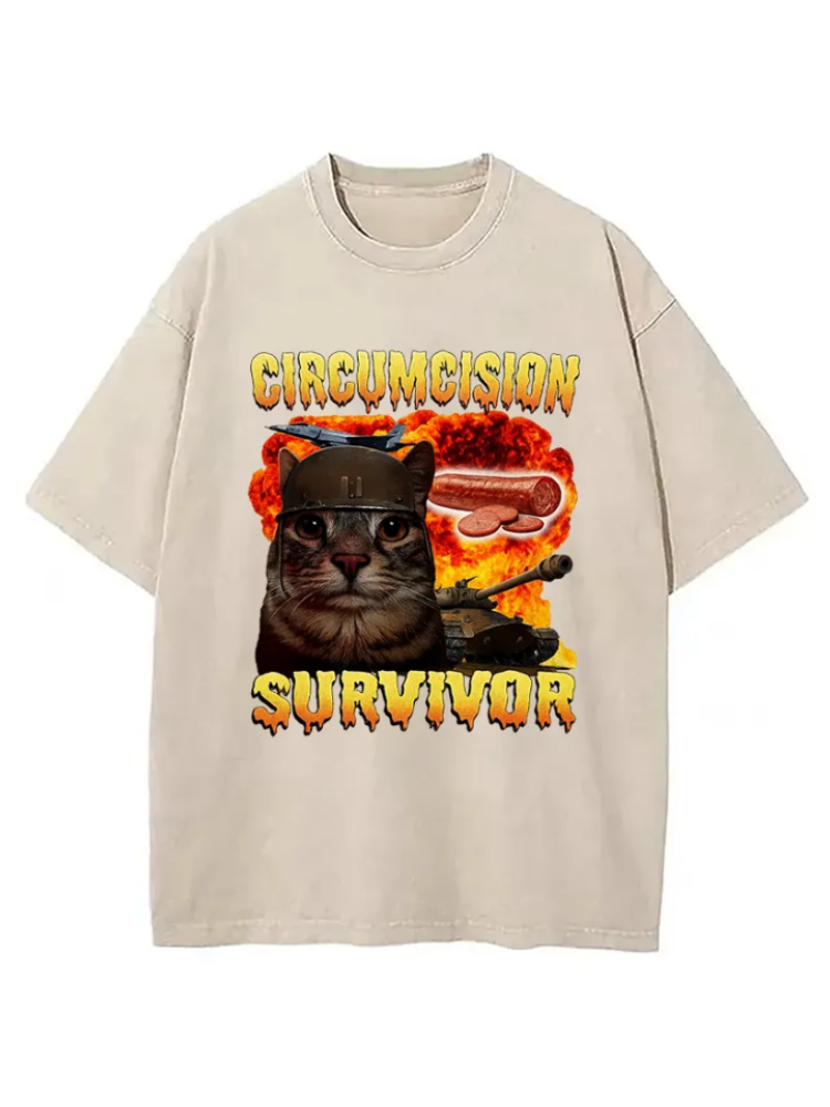 Circumcision Survivor Funny Cat Meme Washed T-shirt