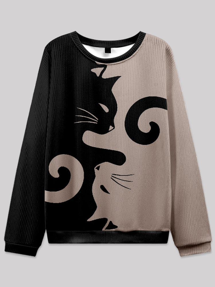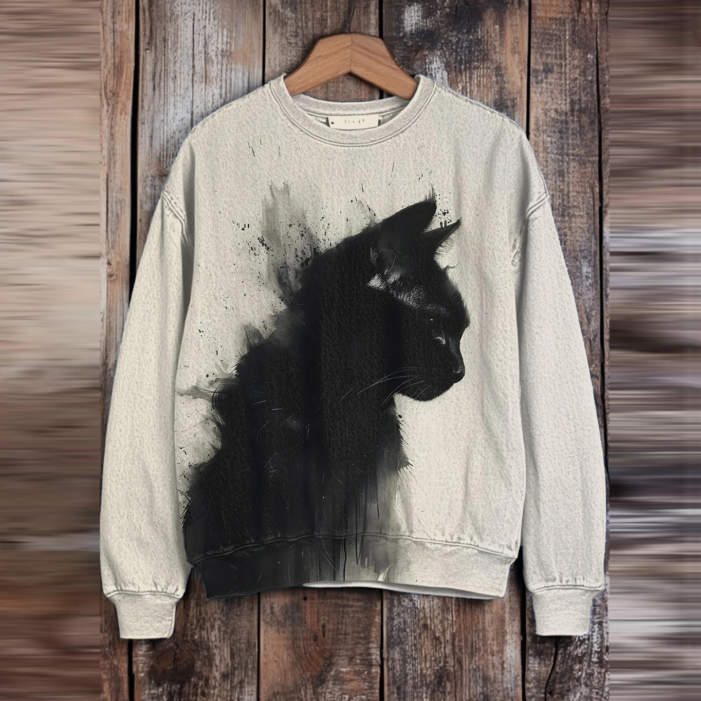 Men's Ink Drawing Black Cat Print Casual Sweatshirt