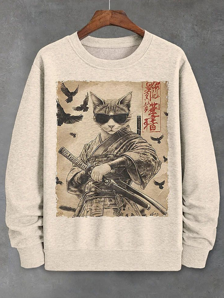 Men's Warrior Cat With Sunglasses Art Print Casual Sweatshirt