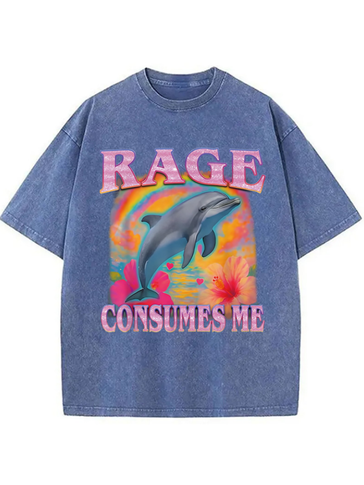 Rage Consumes Me Dolphin Meme Washed T-shirt