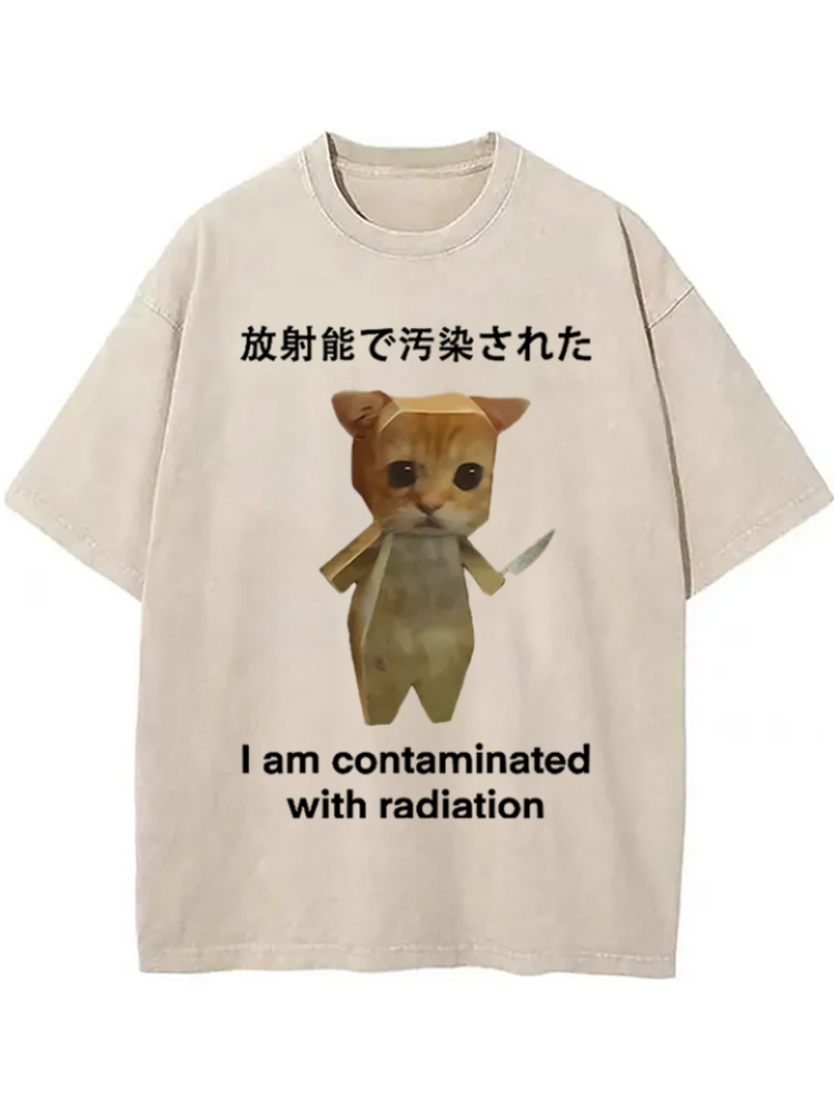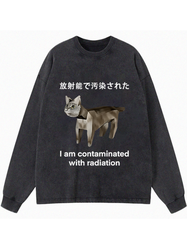 Cat Contaminated By Radiation Long Sleeve Washed T-shirt