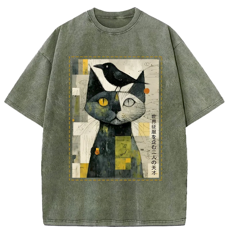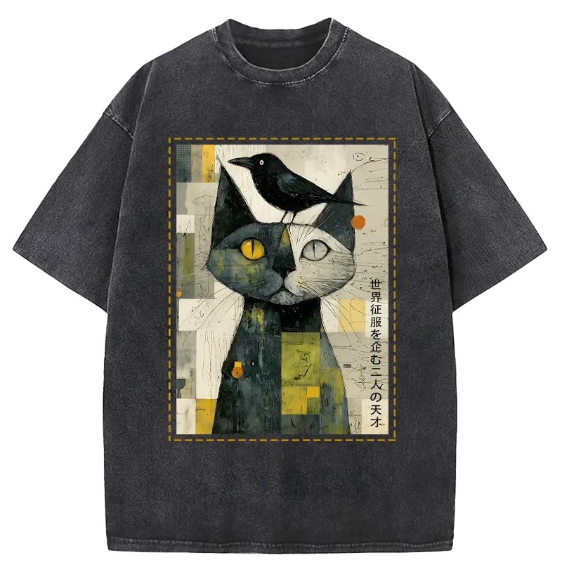 The Cat And The Crow Are Planning To Rule The World Washed T-shirt