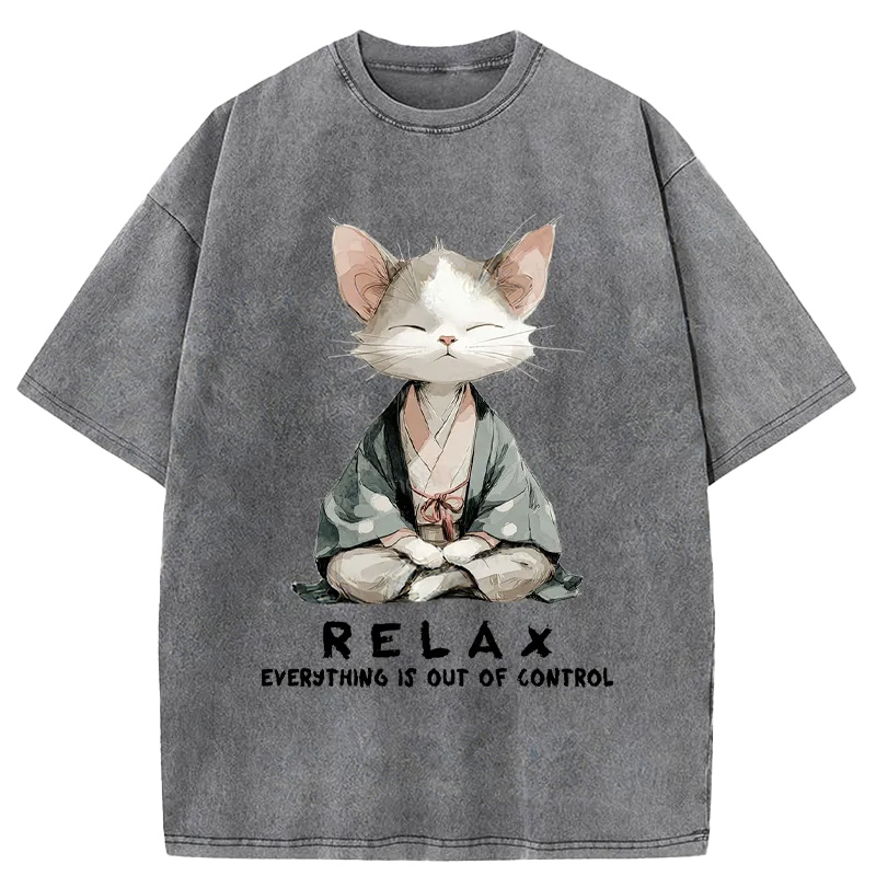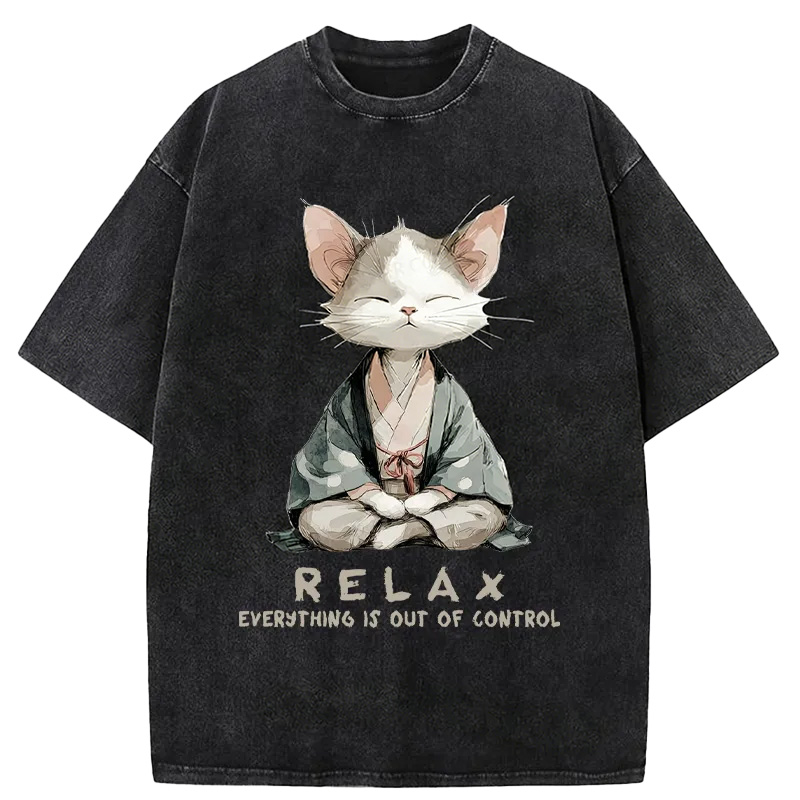 Zen Cat Relaxation,everything's Out Of Control Washed T-shirt
