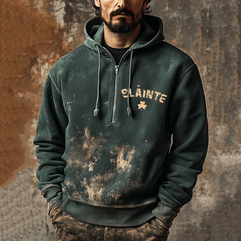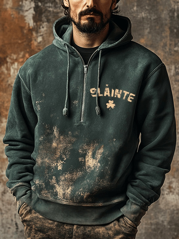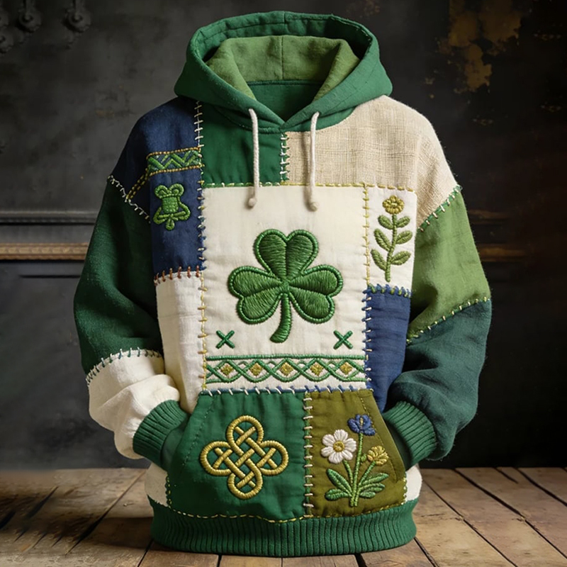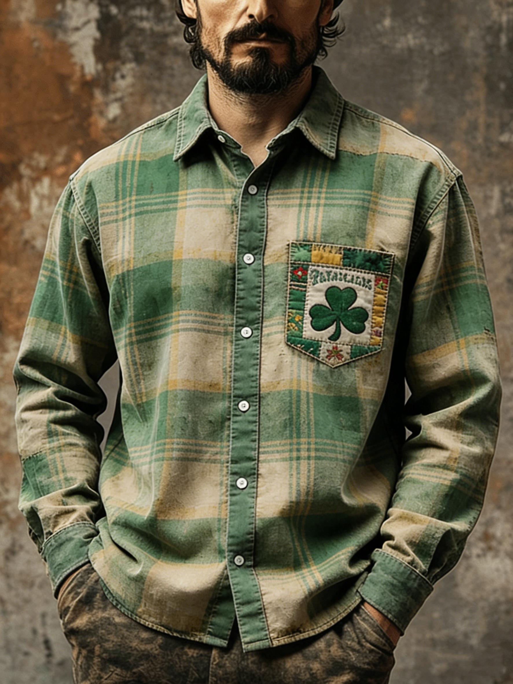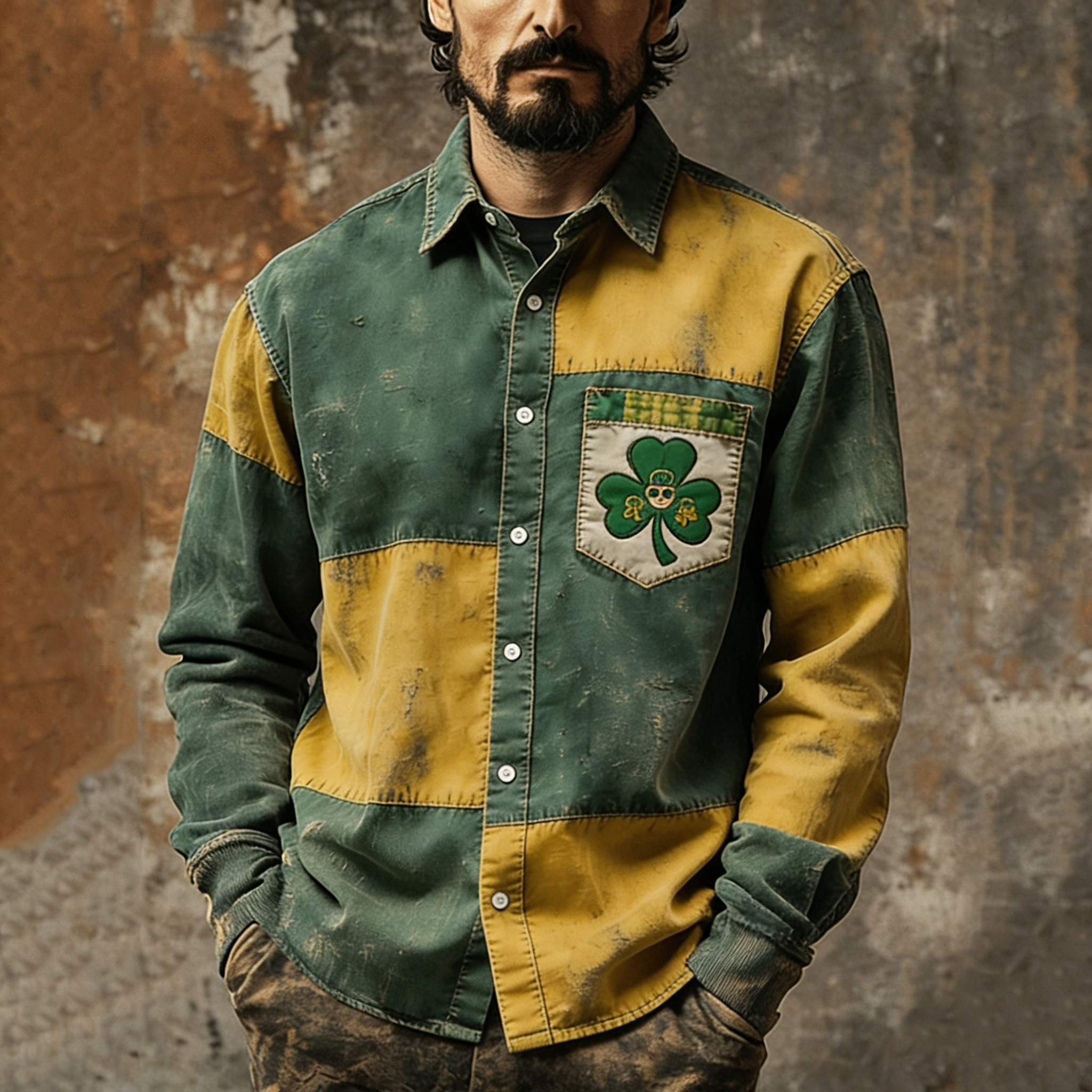 Men's Vintage St Patrick's Day Shamrock With Diamond Pattern Art Cozy Knitted Gentleman Full Zip Cardigan