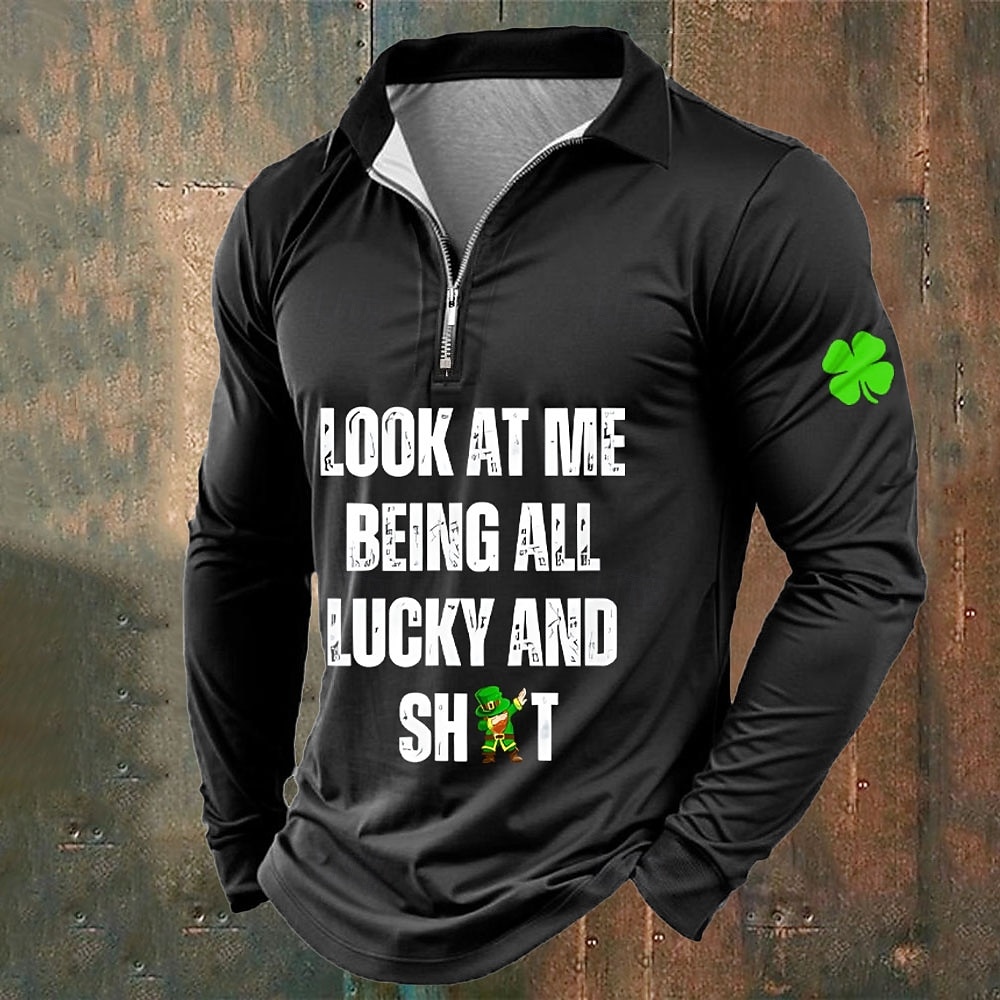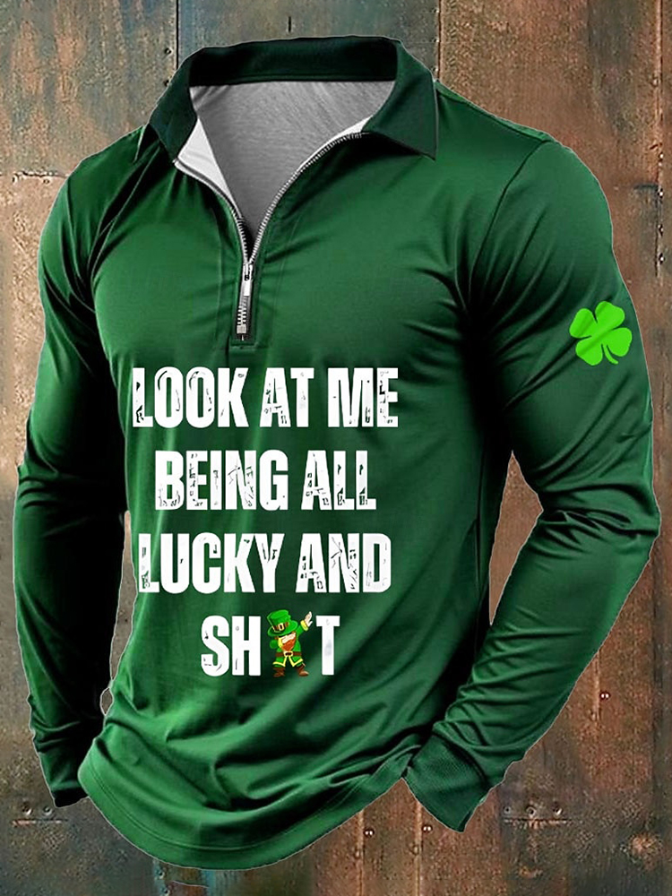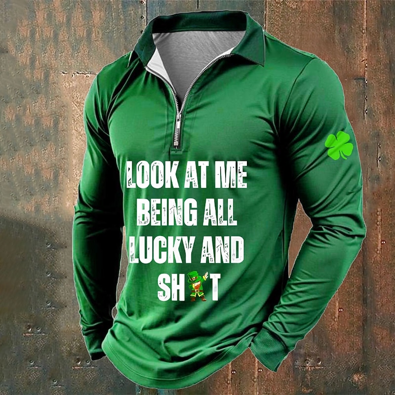 Men's Funny St Patrick's Day Everybody In The Pub Gettin Tipsy Green Beer Shamrock Print Long Sleeve T-shirt