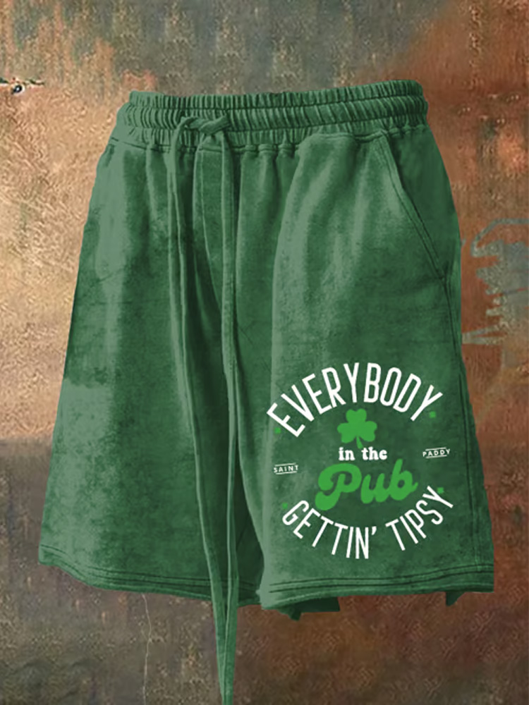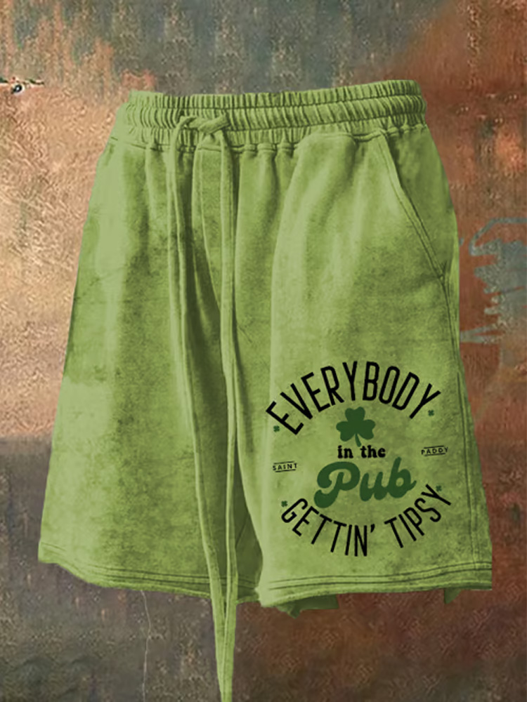 Men's Everybody In The Pub Getting Tipsy St. Patrick's Day Print Loose Casual Shorts
