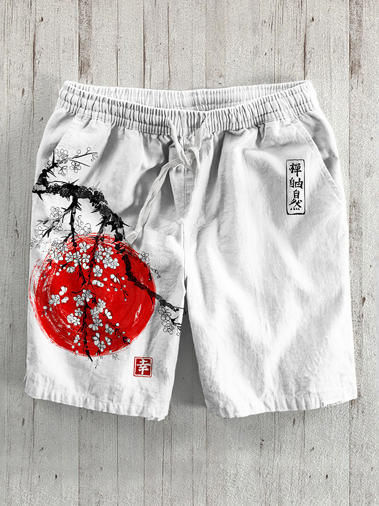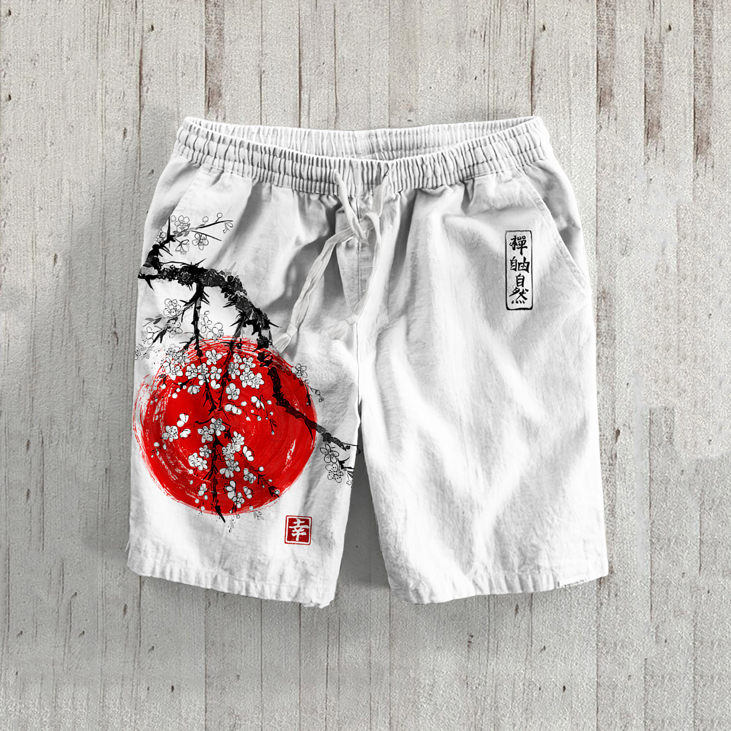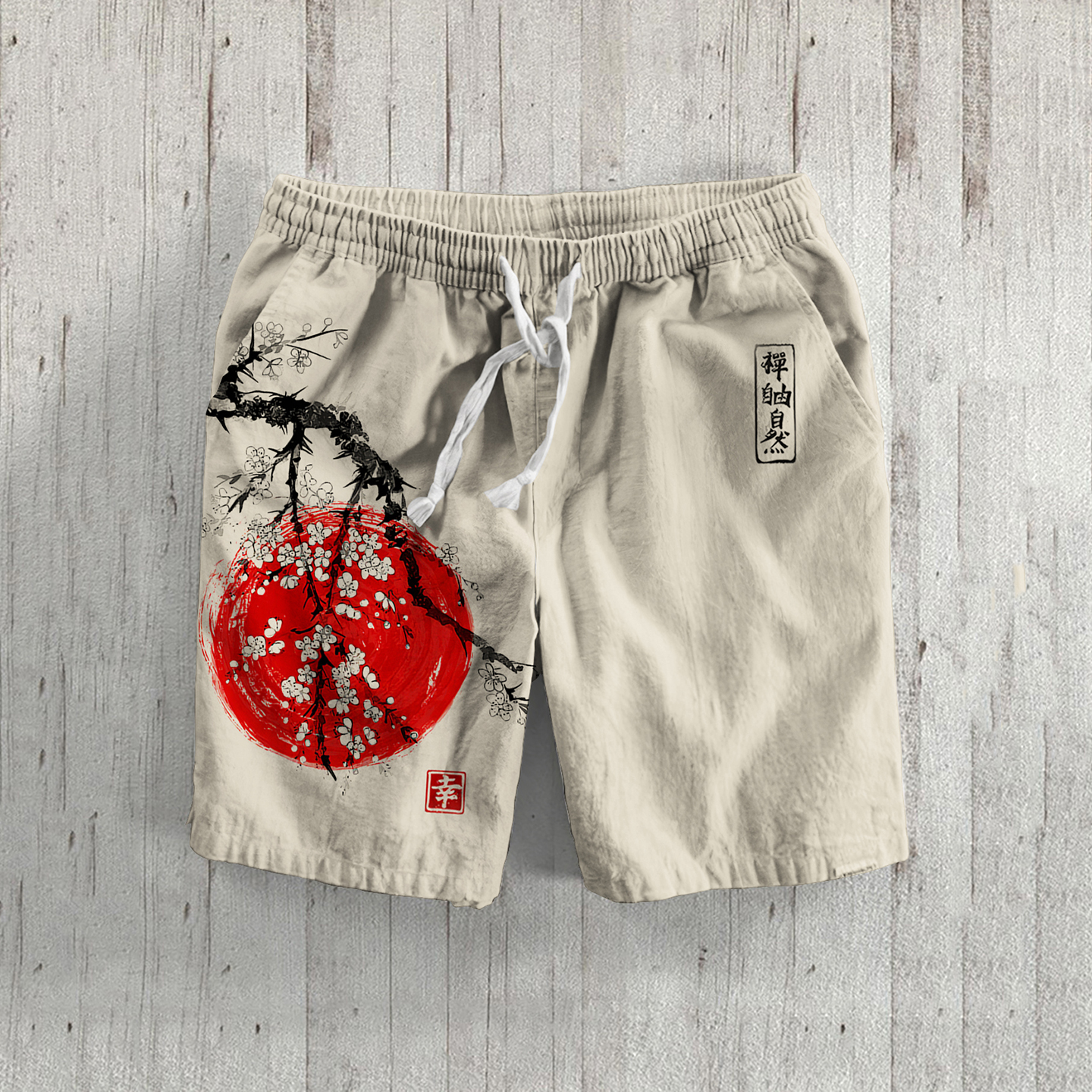 Plum Blossom Sunrise Japanese Art Linen Blend Shorts