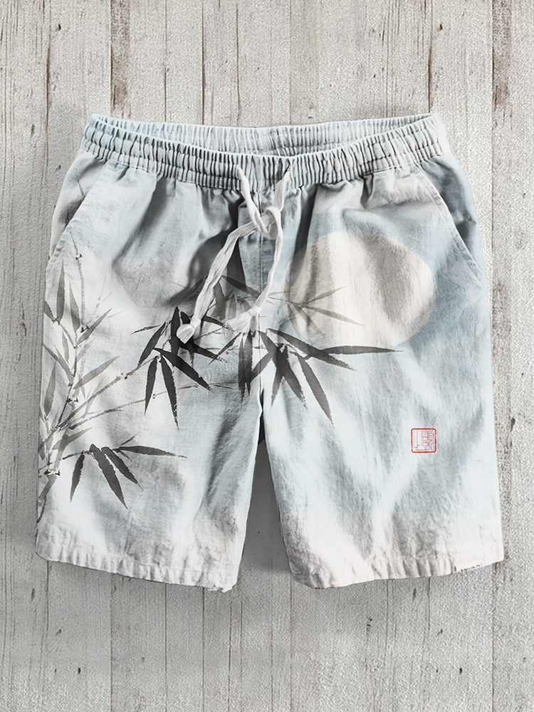 Bamboo & Moon Japanese Art Linen Blend Shorts