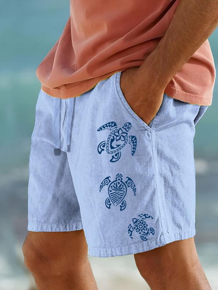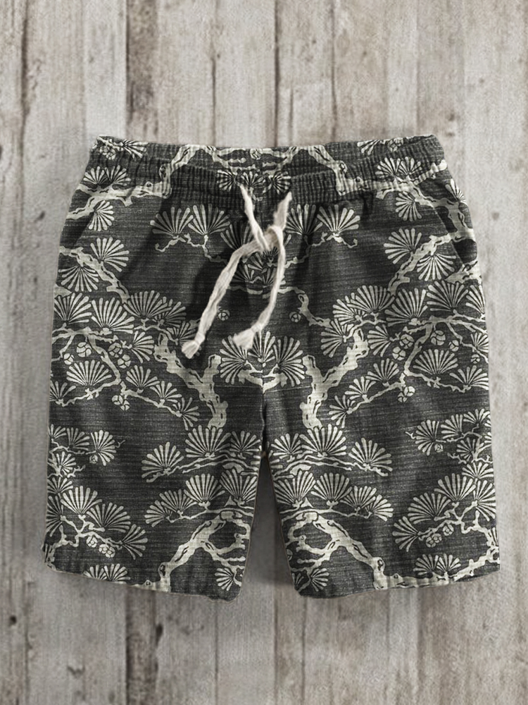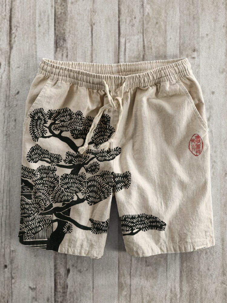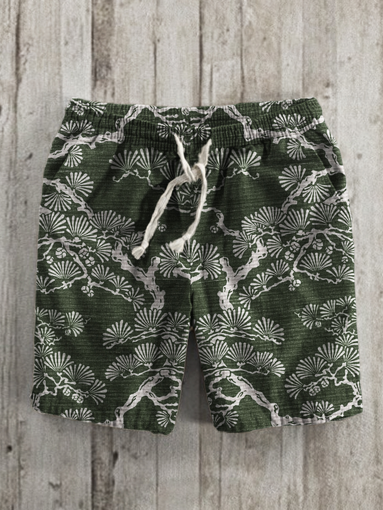 Pine Tree Japanese Lino Art Linen Blend Shorts