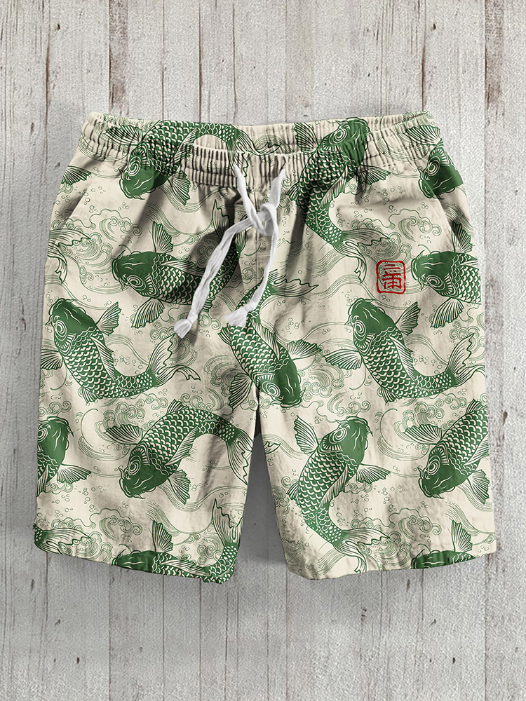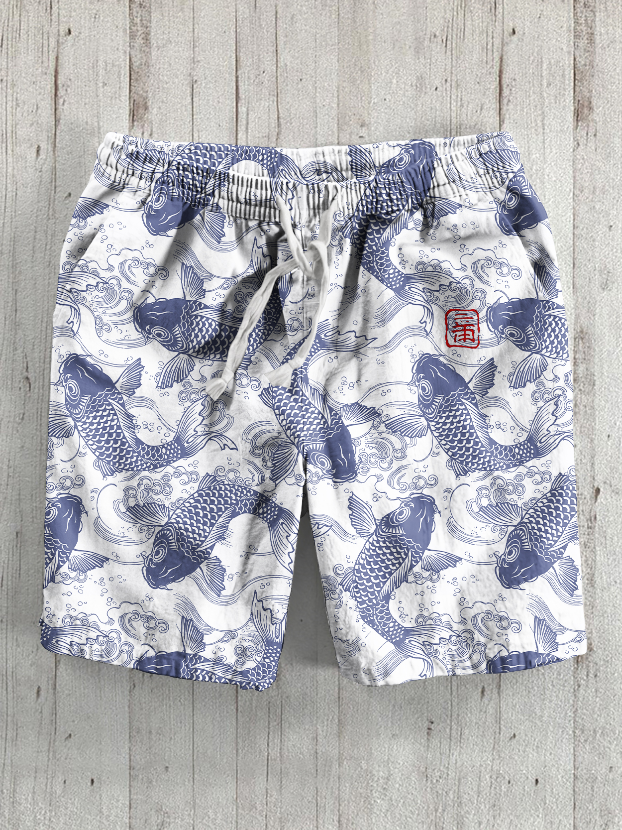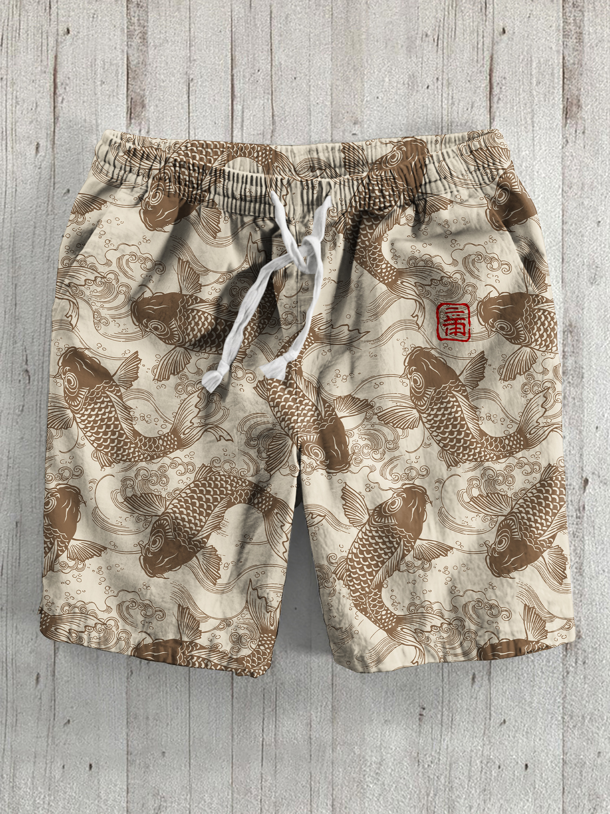 Vintage Fish Japanese Art Graphic Printed Casual Shorts