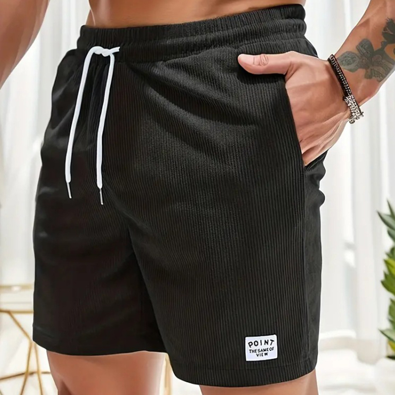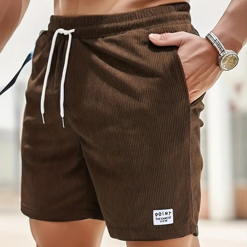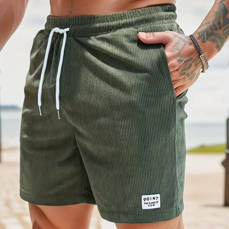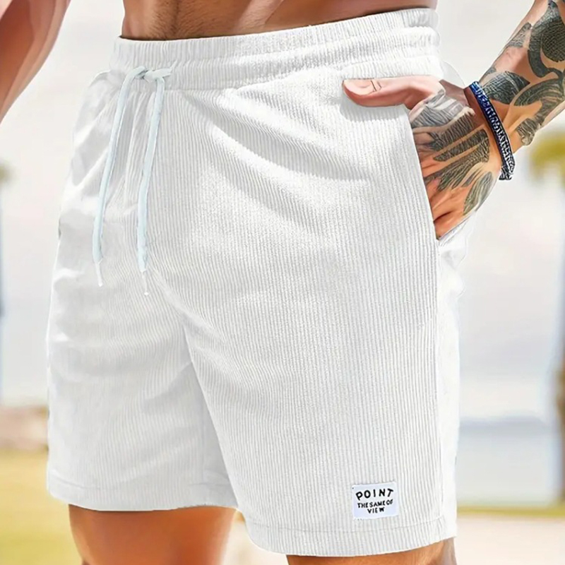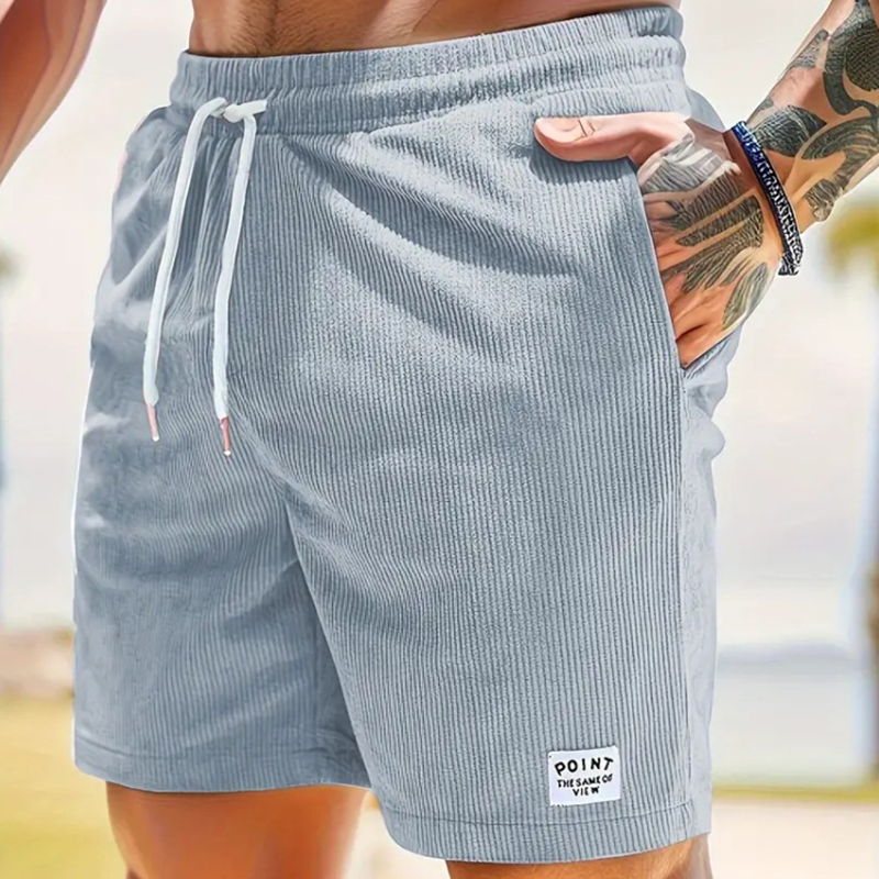 Men'S Solid Color Lace-Up Corduroy Drawstring Shorts
