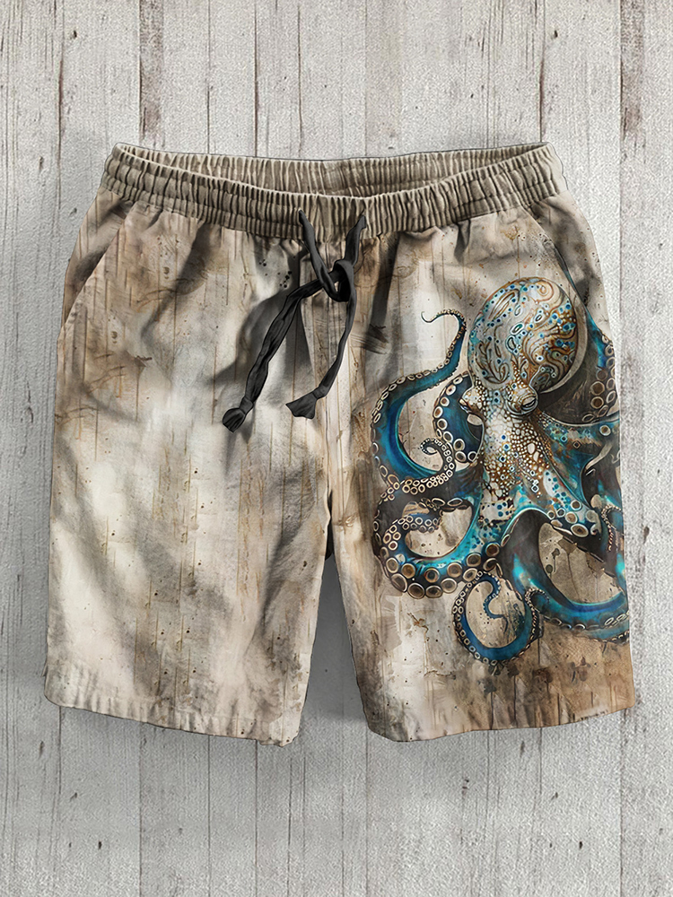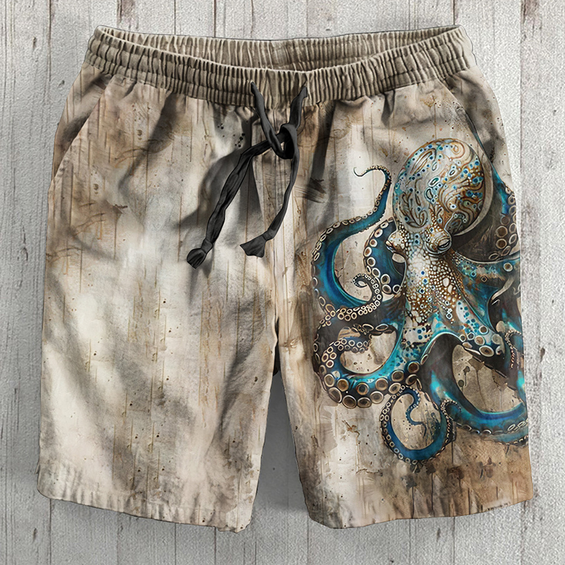 Japanese Art Octopus Graphic Printed Casual Shorts