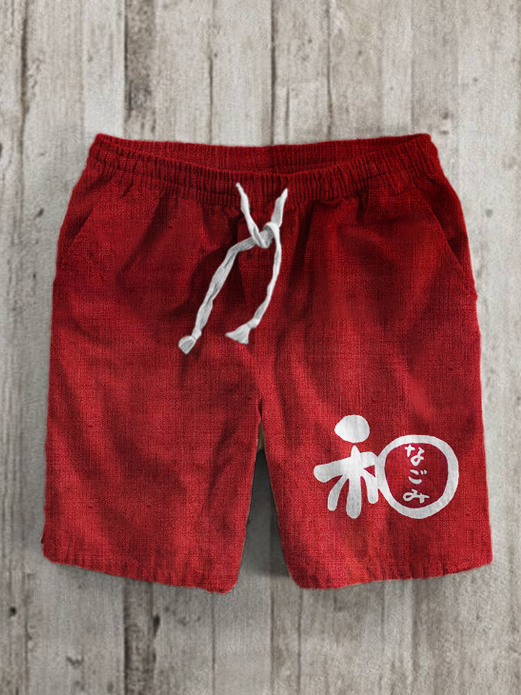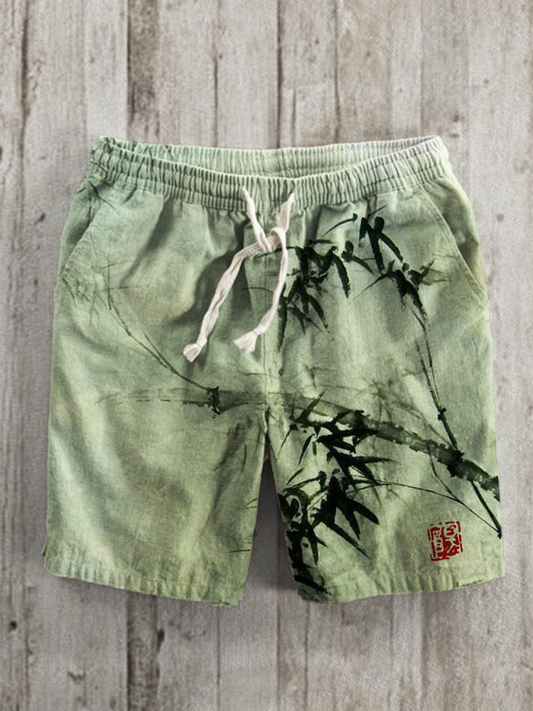 Bamboo Japanese Art Contrast Linen Blend Shorts