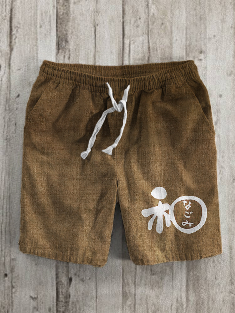 Japanese Traditional Sashiko Art Linen Blend Shorts