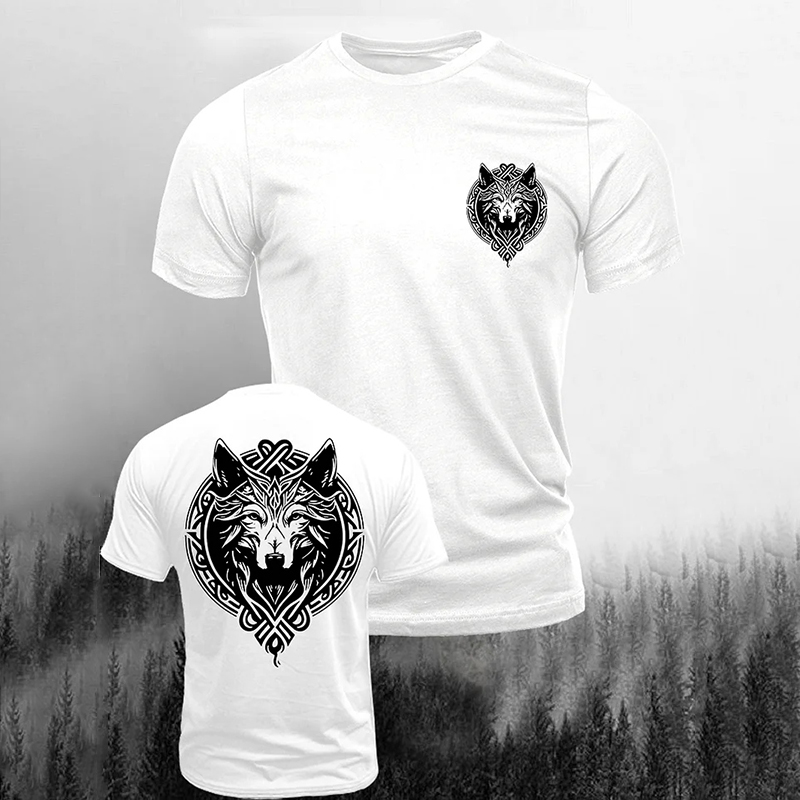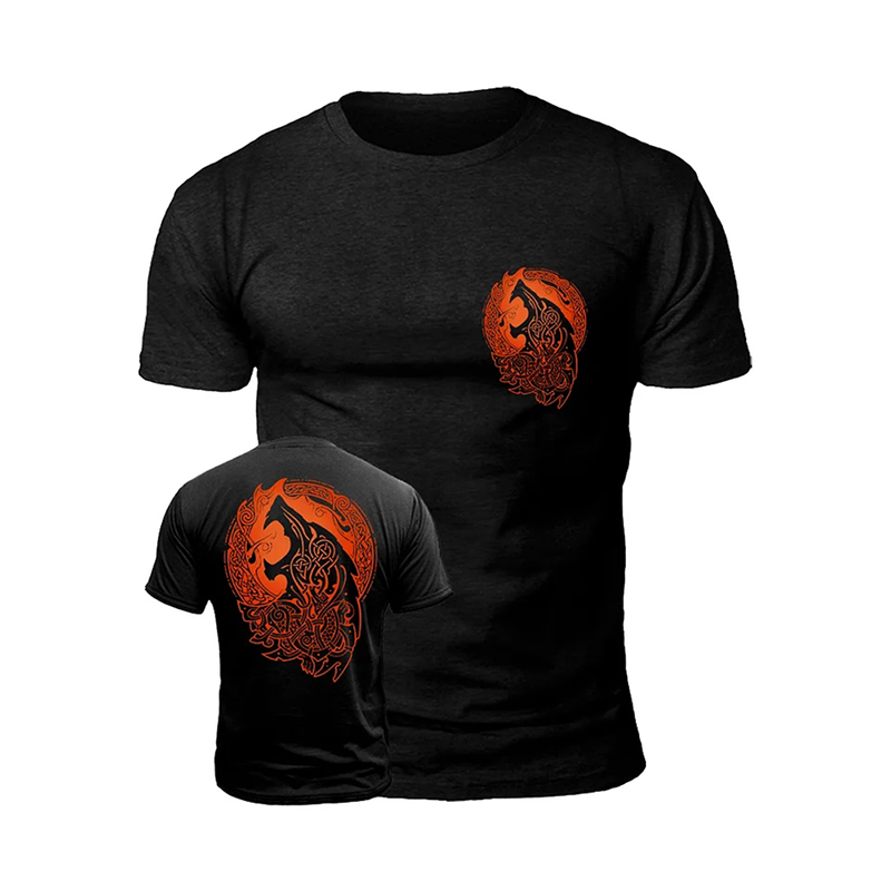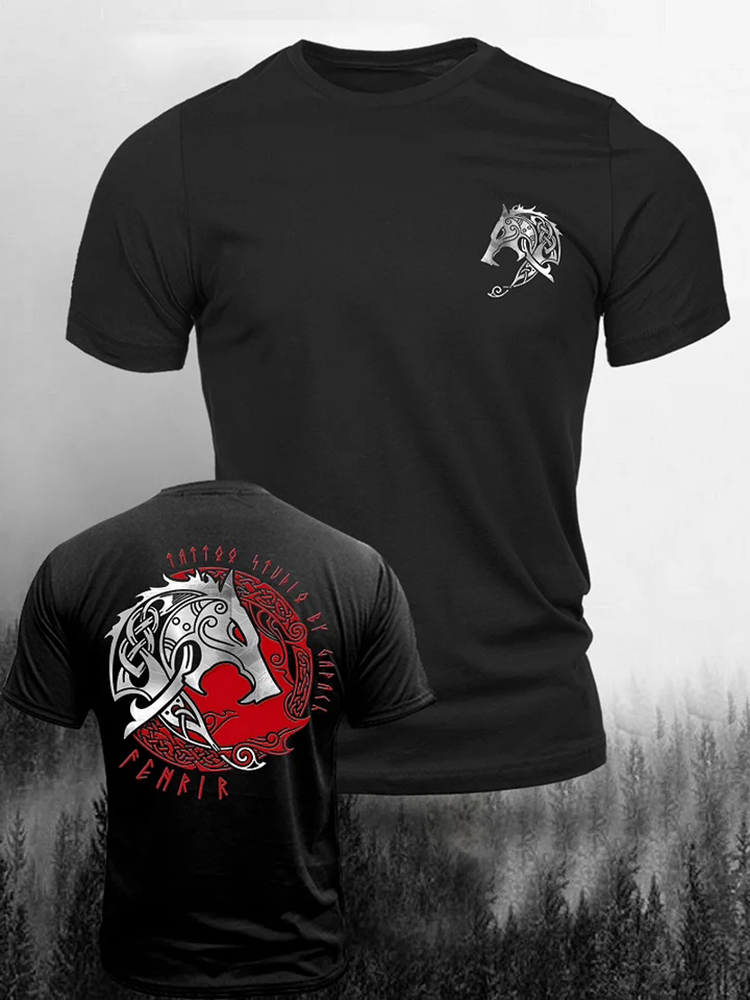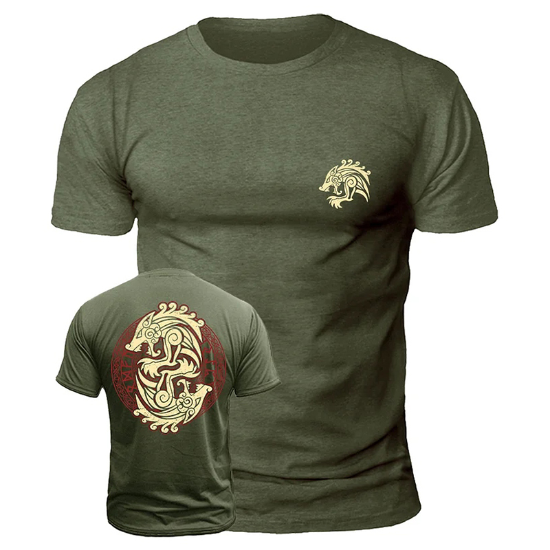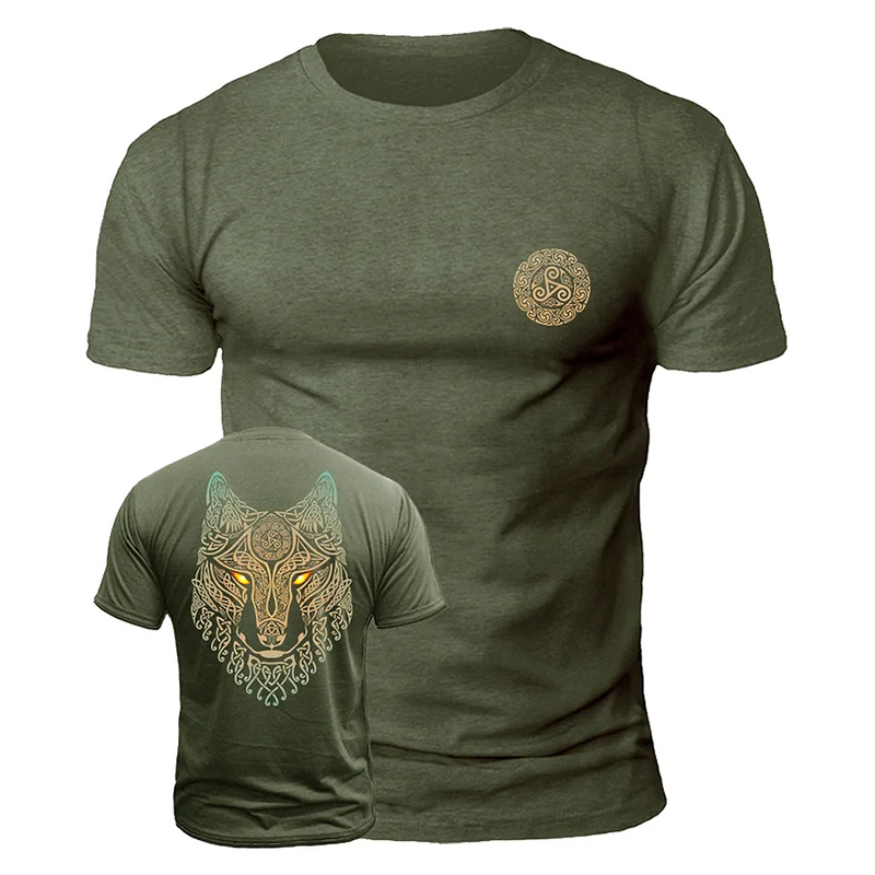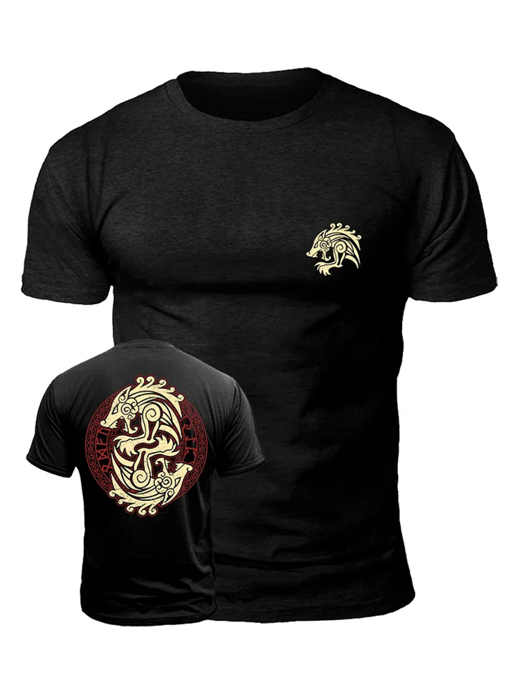 Men's Viking Wolf Print Casual Short Sleeve T-shirt