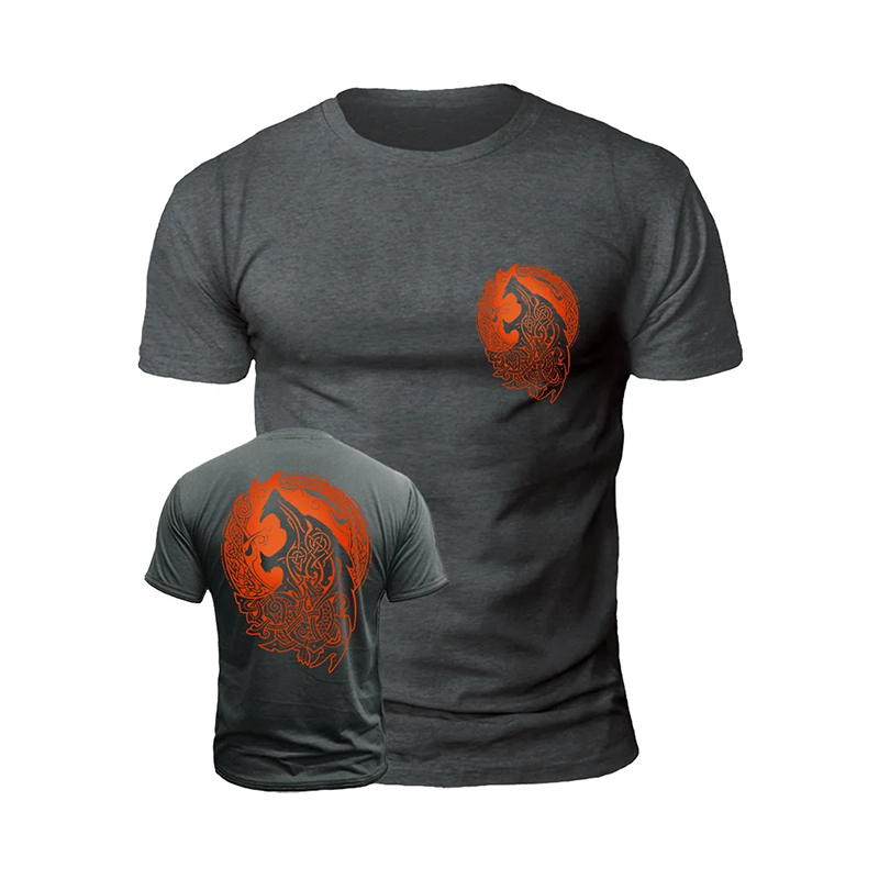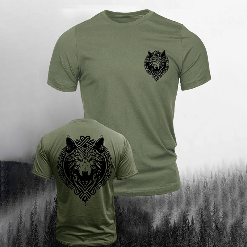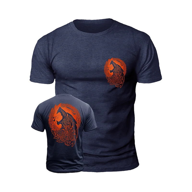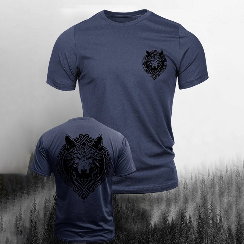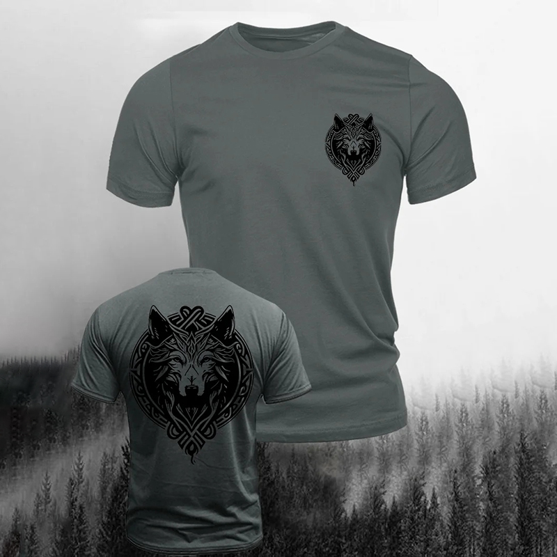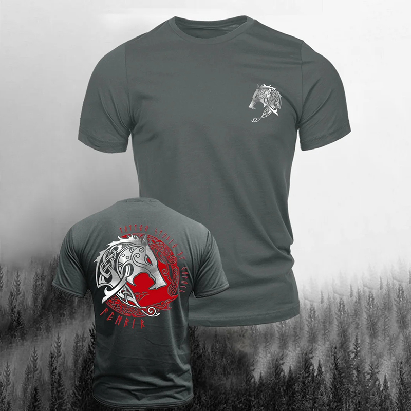 Men's Viking Wolf Print Casual Short Sleeve T-shirt