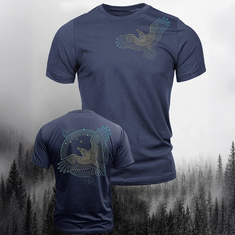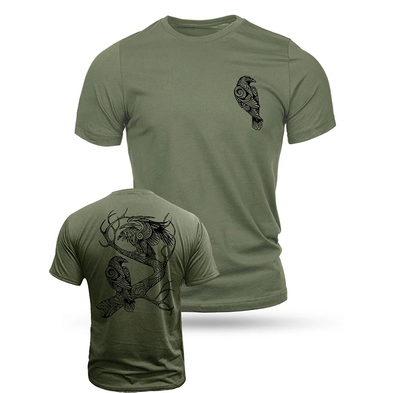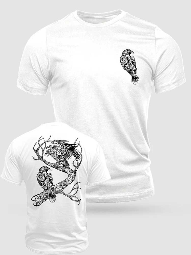 Men's Viking Branch And Raven Print Casual Short Sleeve T-shirt