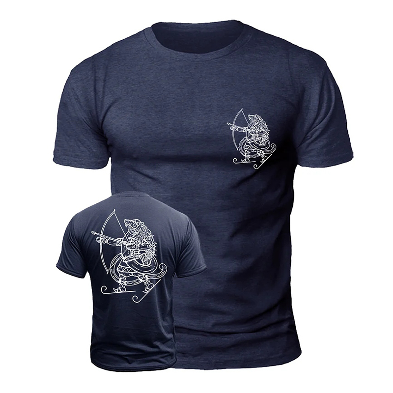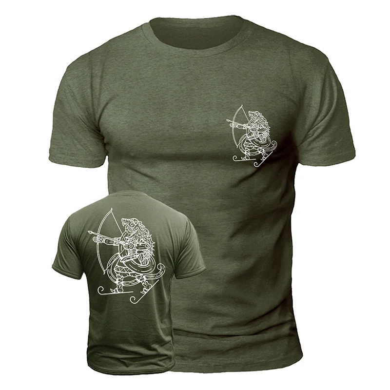 Men's Viking Skiing And Archery Print Casual Short Sleeve T-shirt