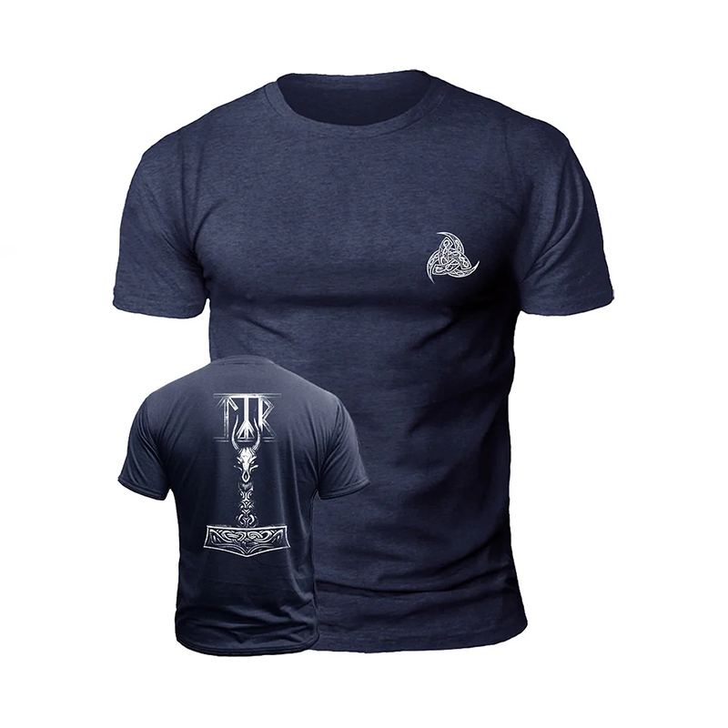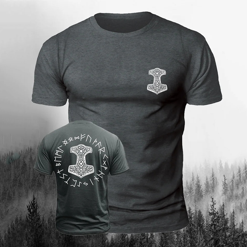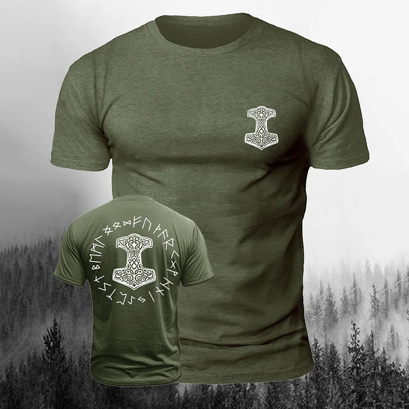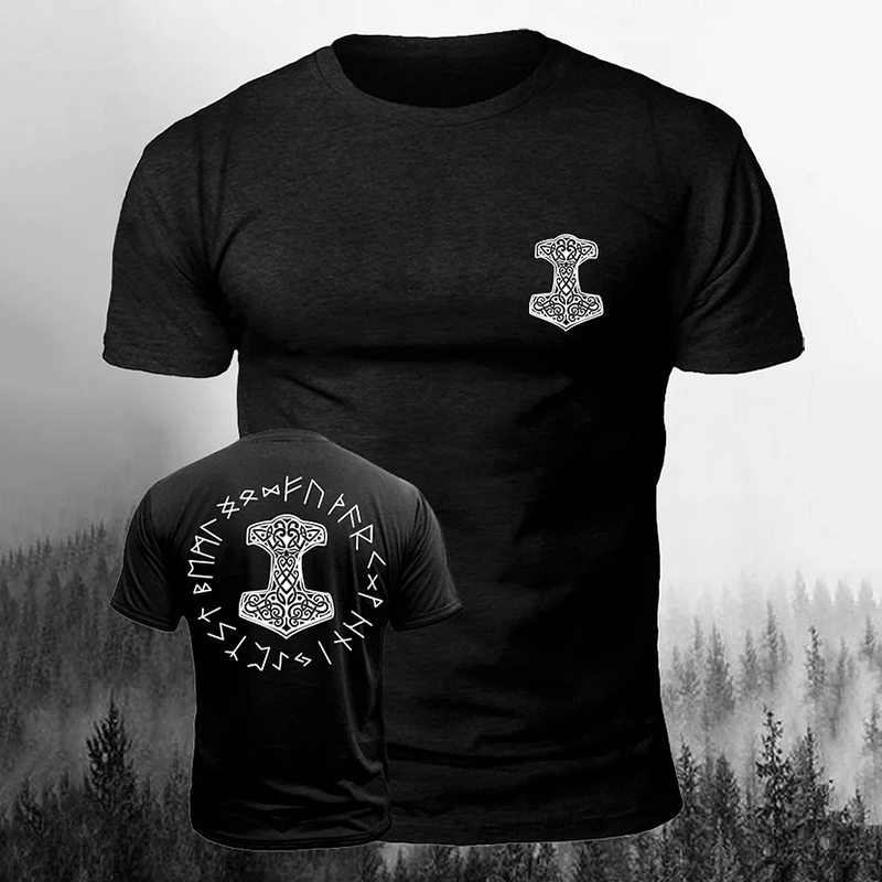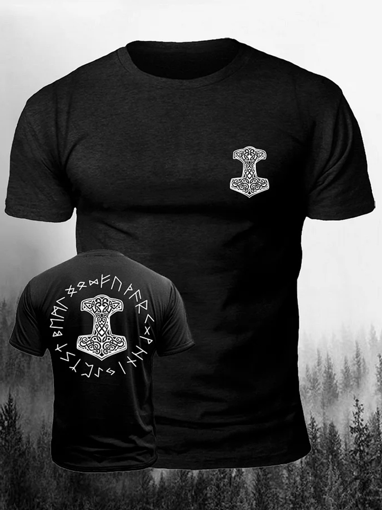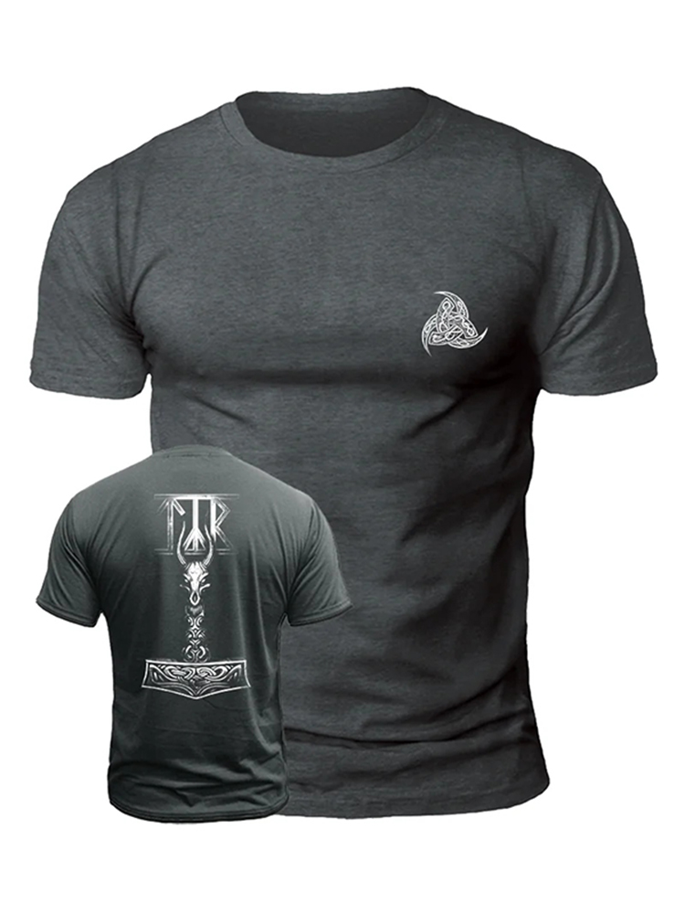 Men's Viking Hammer Print Casual Short Sleeve T-shirt