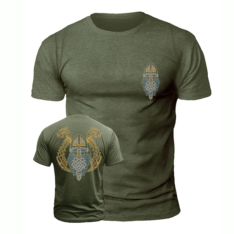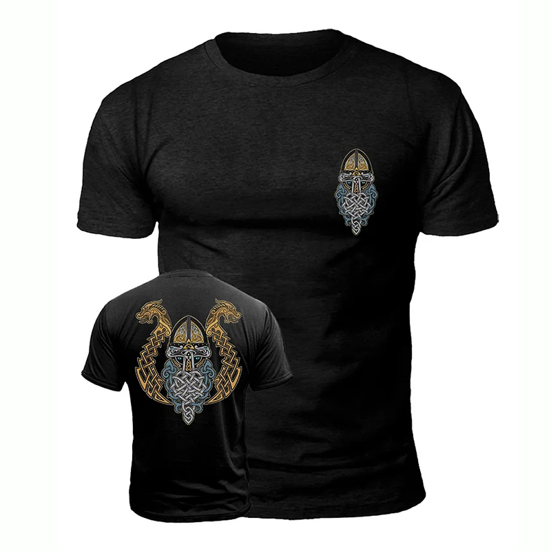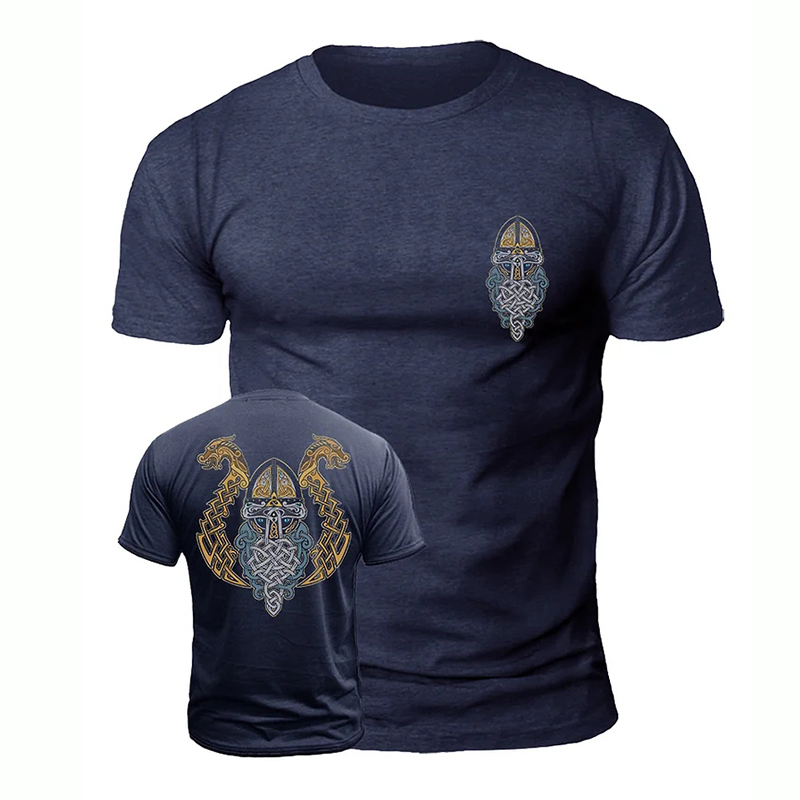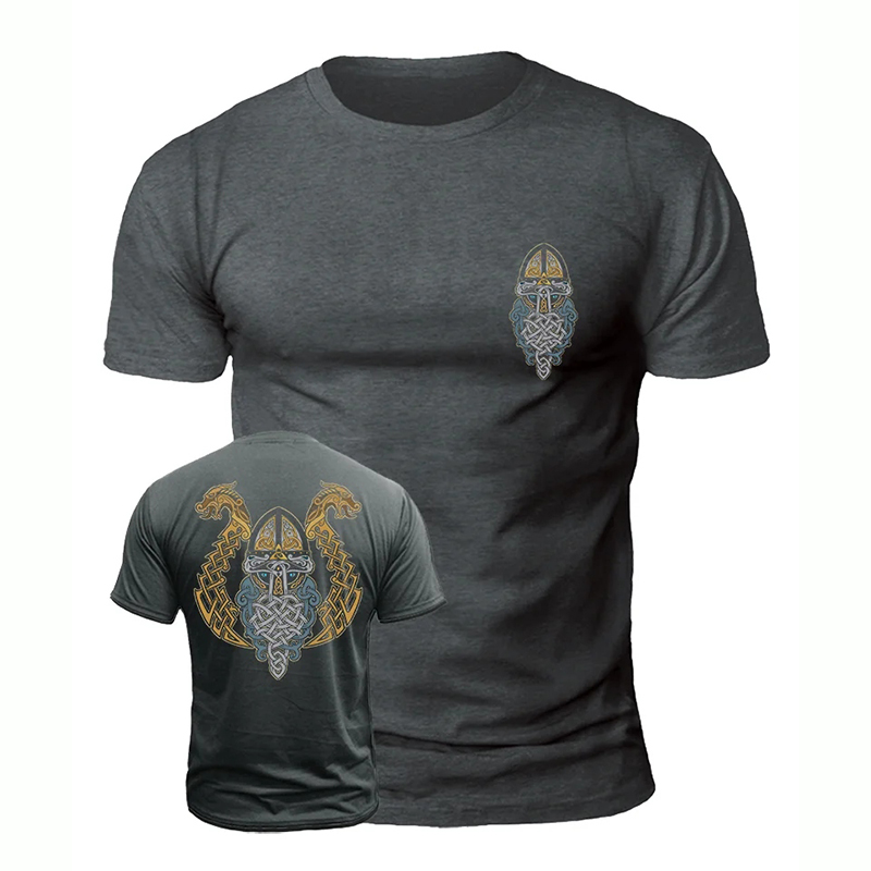 Men's Vintage Viking Print Casual Short Sleeve T-shirt