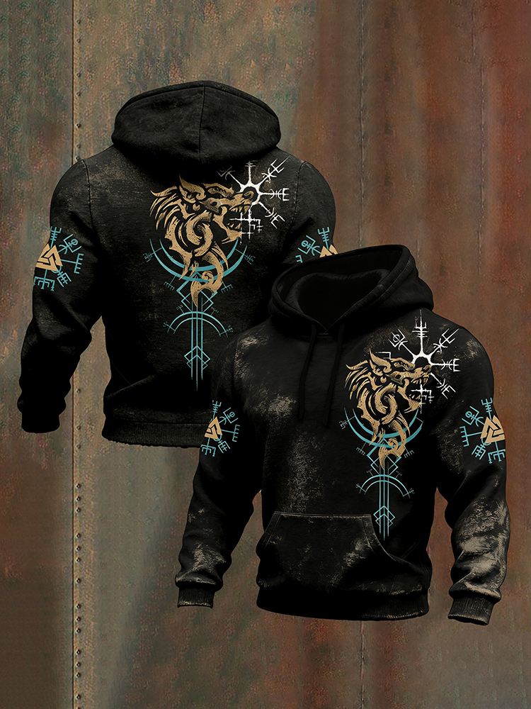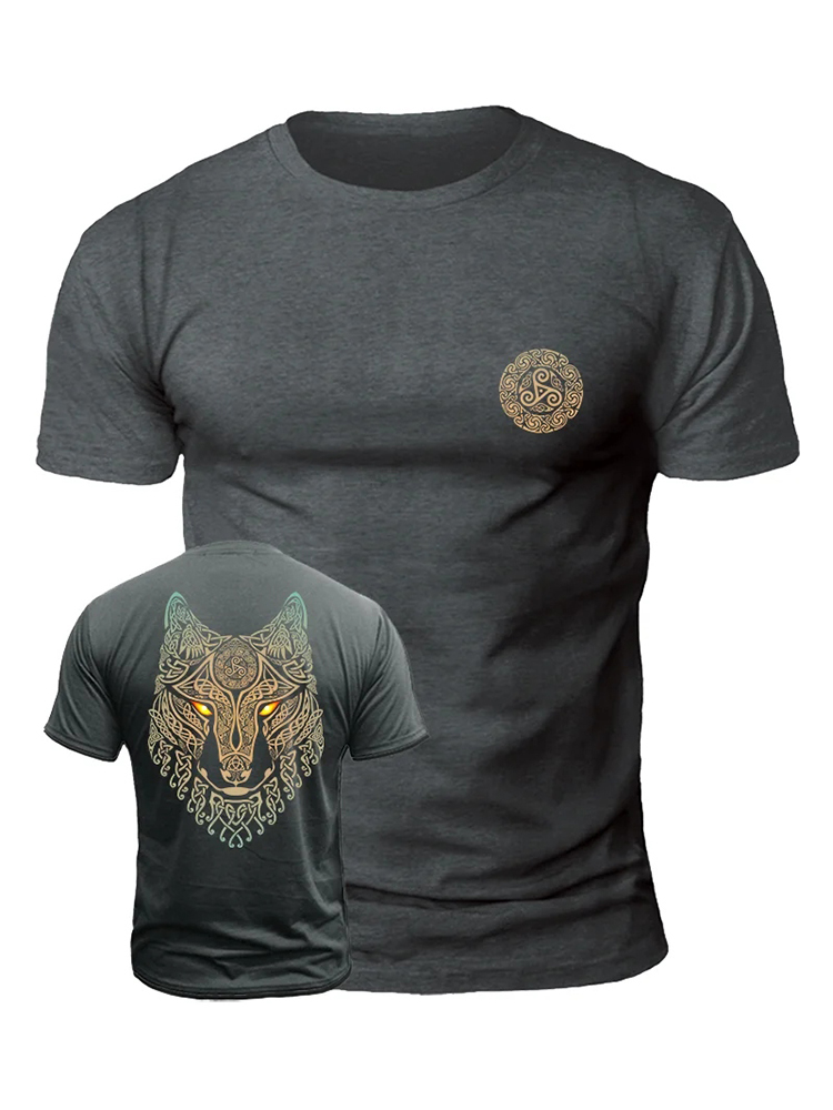 Men's Vintage Viking Wolf Print Casual Short Sleeve T-shirt