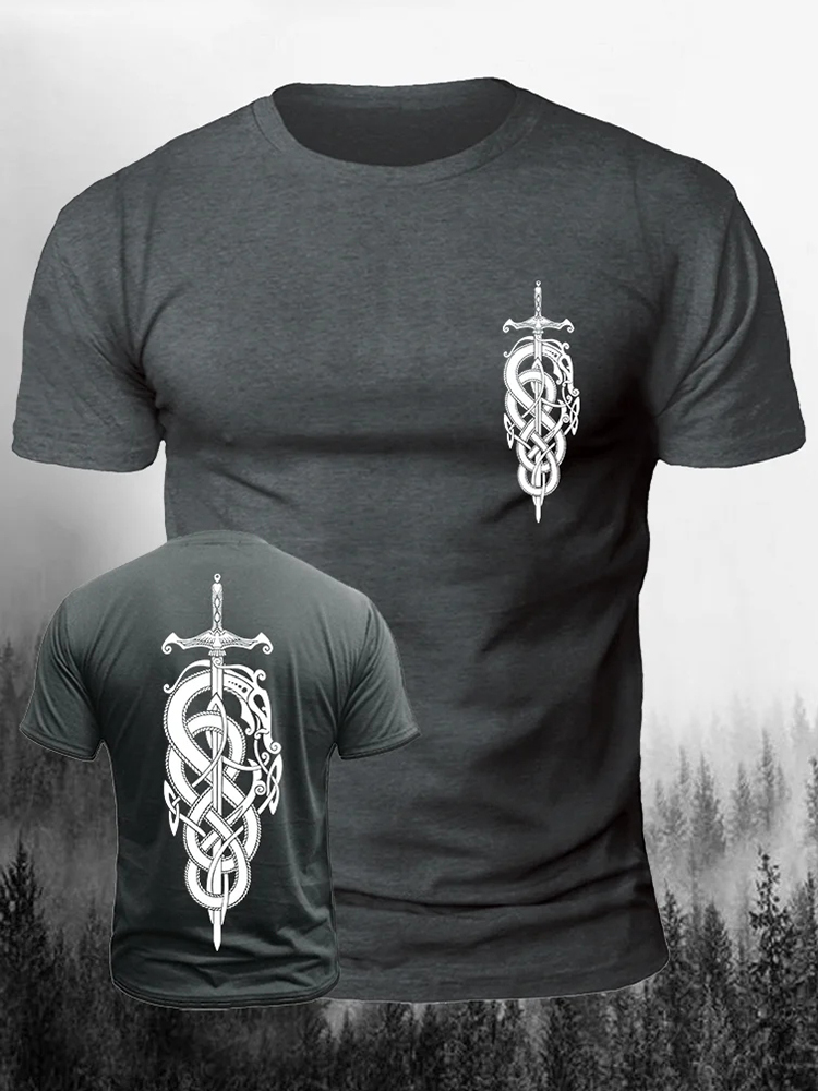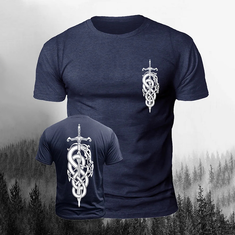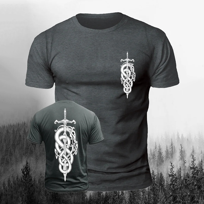 Men's Viking Snake Winding Sword Print Casual Short Sleeve T-shirt