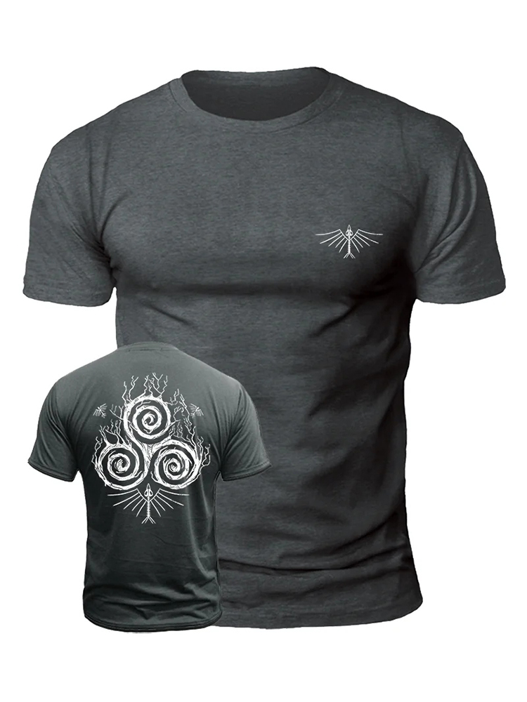 Men's Viking Spiral Tree Print Casual Short Sleeve T-shirt