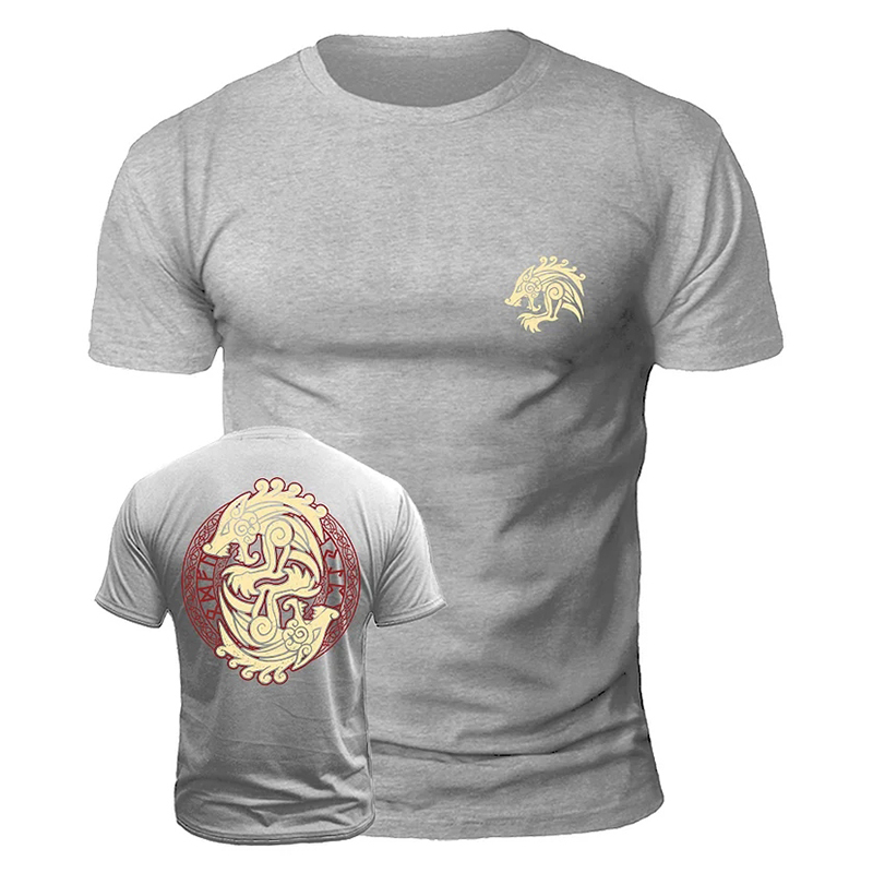 Men's Viking Wolf Norse Mythology Print Casual Short Sleeve T-shirt