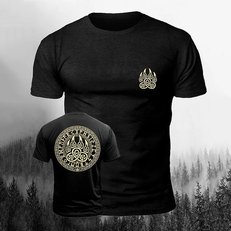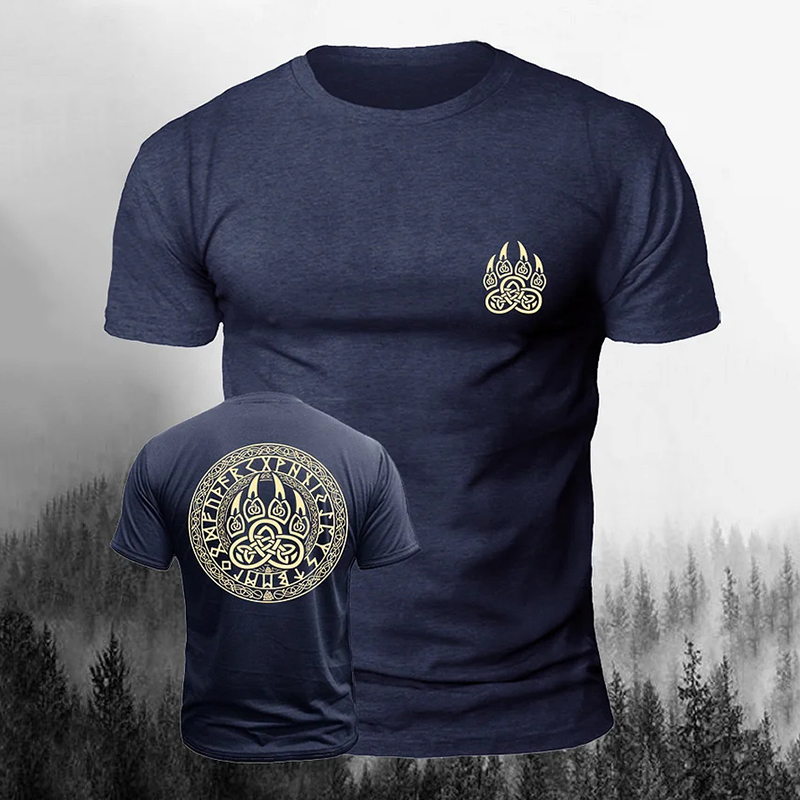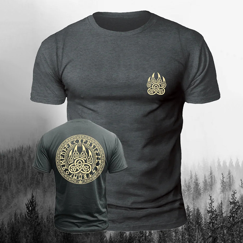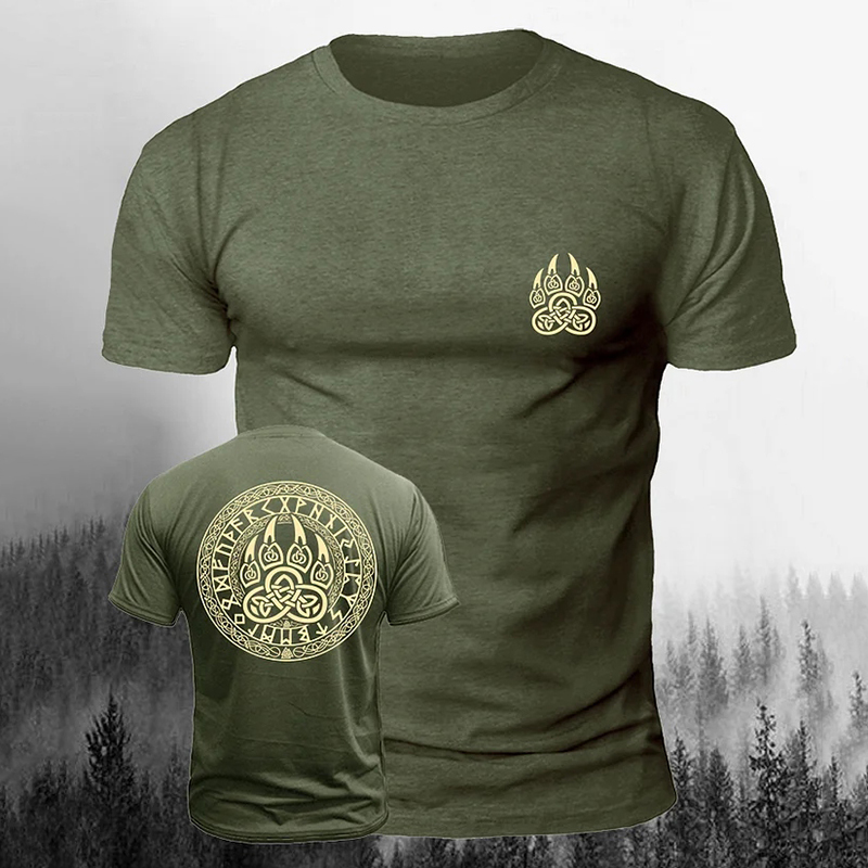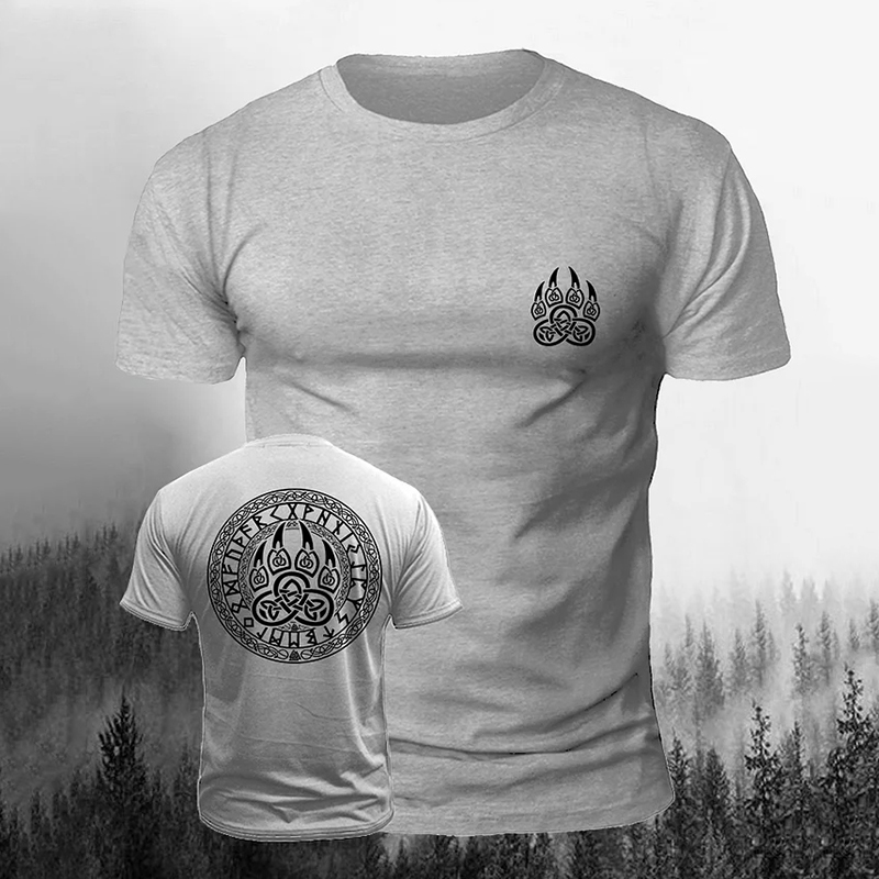 Men's Viking Bear Paw Print Casual Short Sleeve T-shirt
