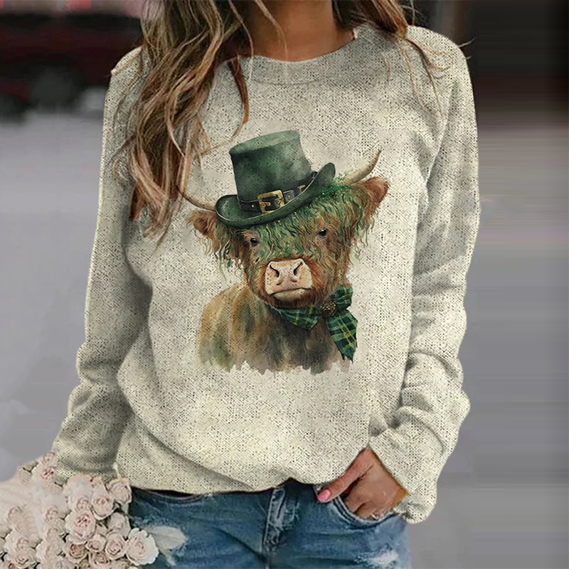 Women's St. Patricks Day Highland Cow Print Sweatshirt
