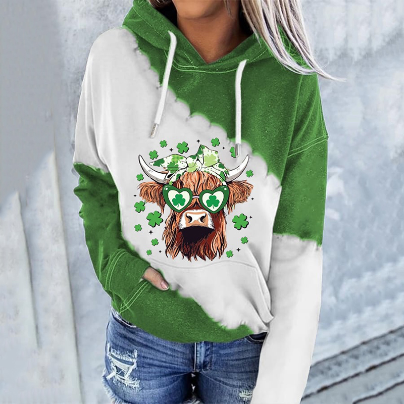 Women's St. Patricks Day Highland Cow Print Casual Hoodie