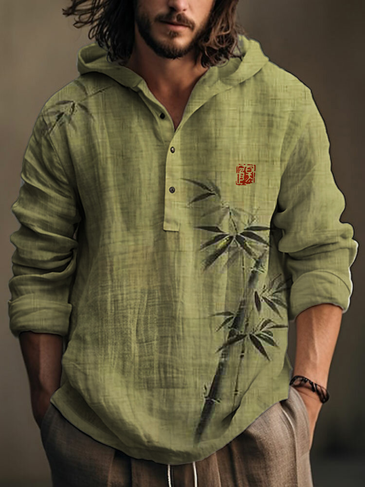 Simple Bamboo Japanese Art Linen Blend Hooded Shirt