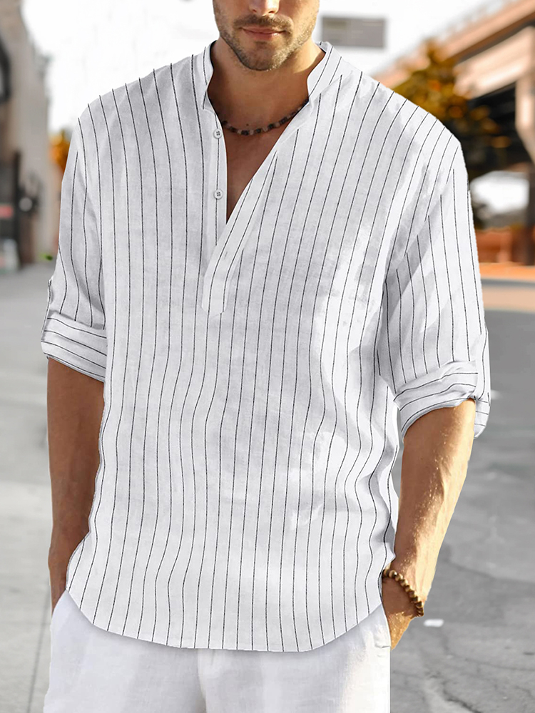 Men's Casual Solid Color Stripes Linen Blend Long Sleeve Shirt