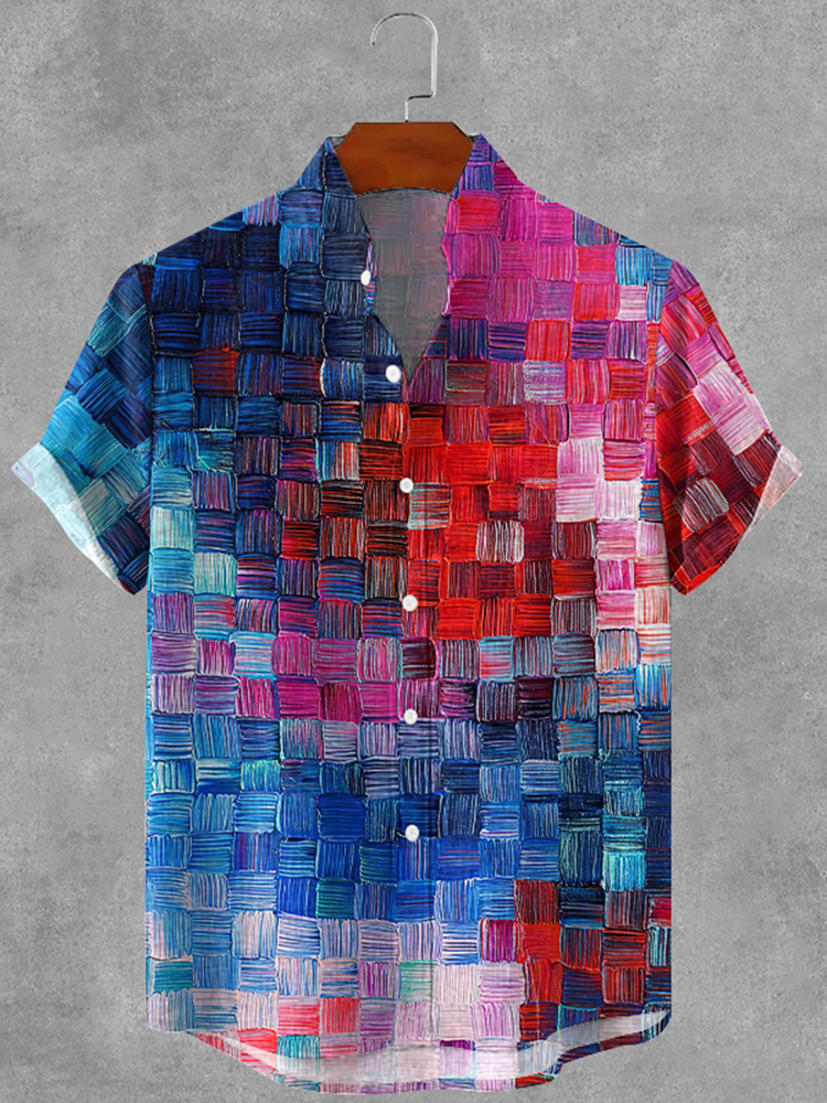 Retro Oil Painting Geometric Plaid Art Print Cotton And Linen Shirt