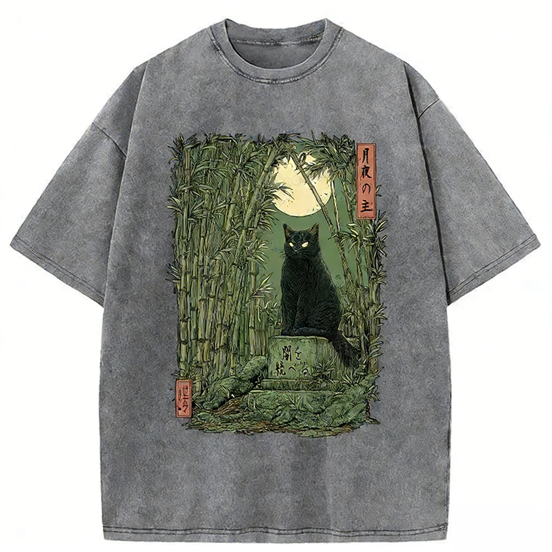 Black Cat In The Bamboo Forest Washed T-shirt