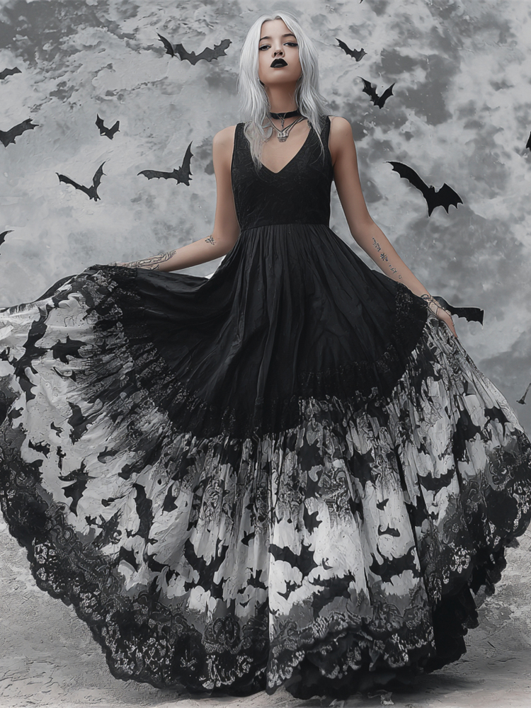 Halloween Bat Lace Gothic Art Women's Vest Maxi Dress