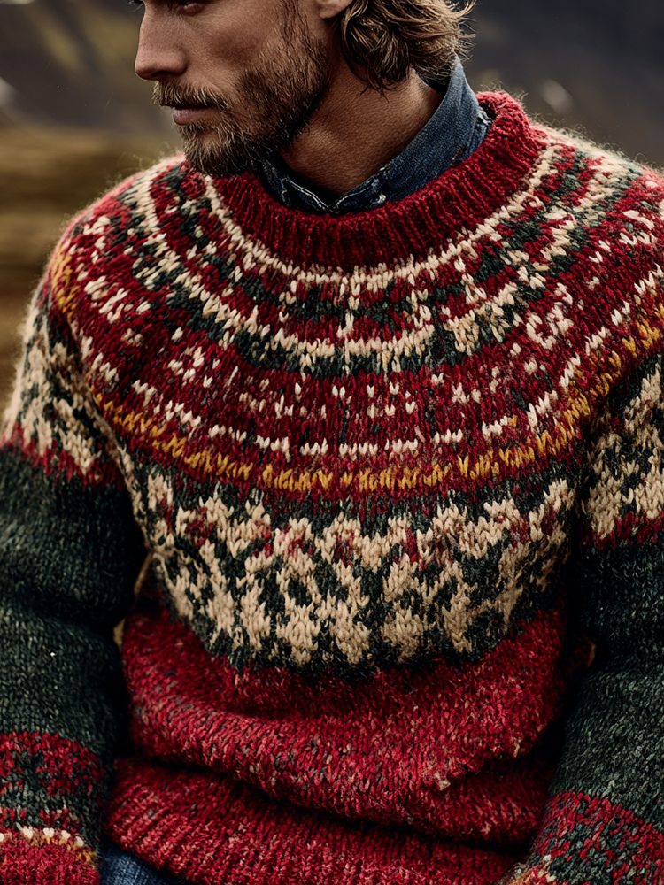 Irish Vintage Knit Totem Men's Hooded Sweater