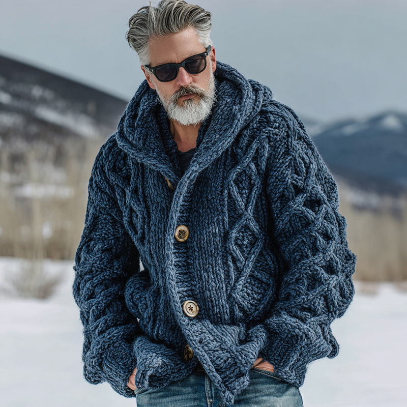 Men's Casual Fairman Island Chunky Knit Buttons Hooded Sweater Cardigan
