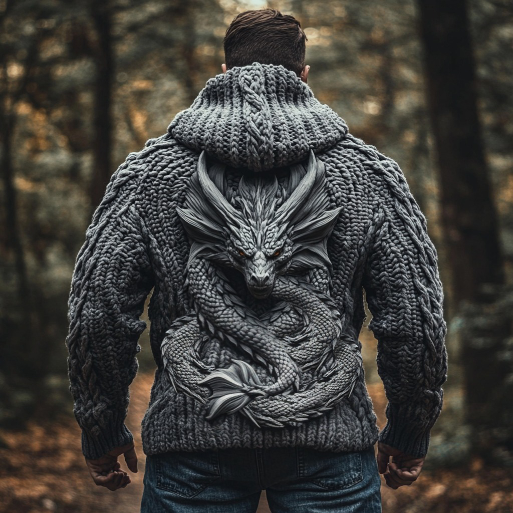 Men's Dragon Viking Chunky Knit Hooded Sweater