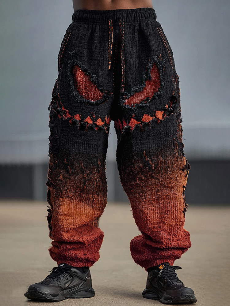 Men's Halloween Spooky Face Gradient Inspired Knitted Distressed Casual Long Pants