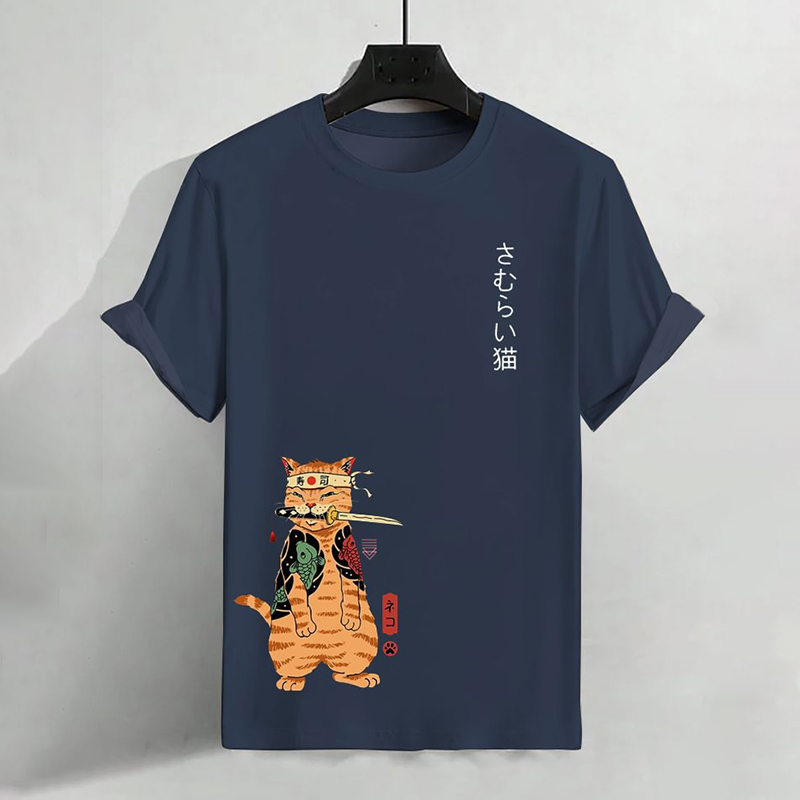 Men'S Japanese Sushi Samurai Cat Print Casual T-Shirt