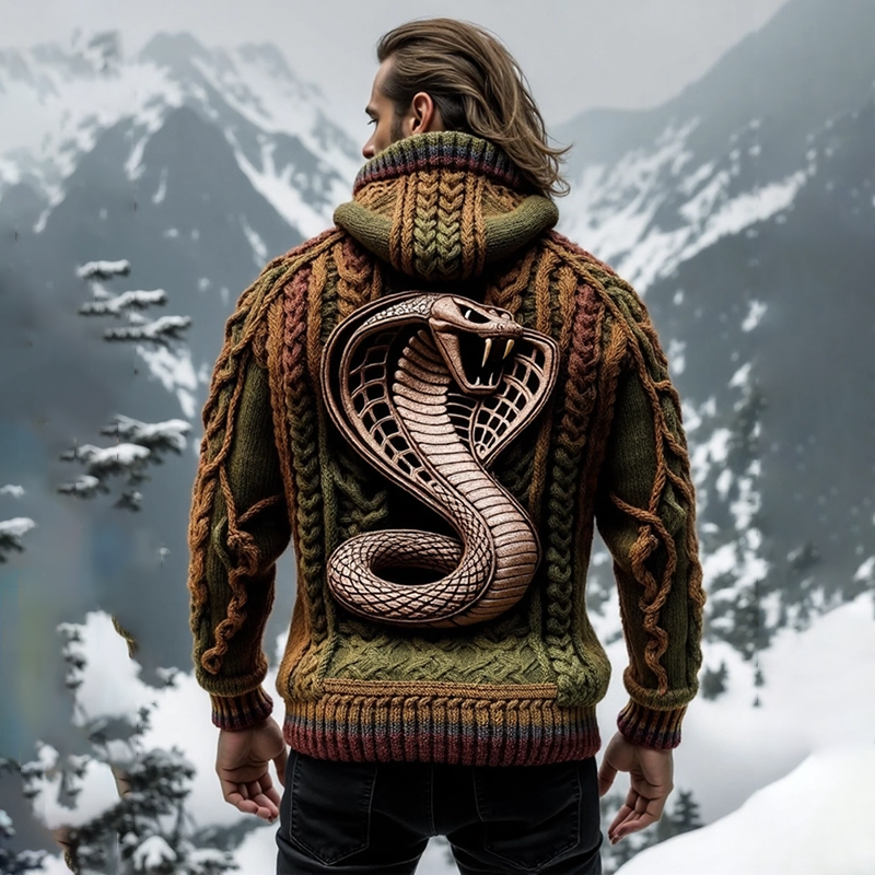 Men's Never Dies No Mercy cobra Celtic Chunky Knit Hooded Sweater