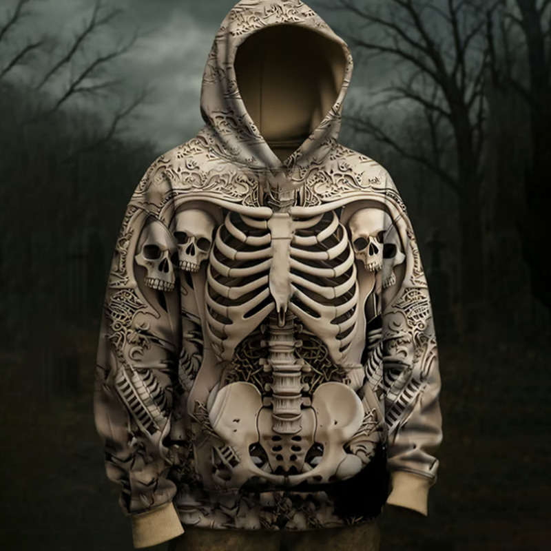 Men's Retro Halloween Skull Printed Hoodie