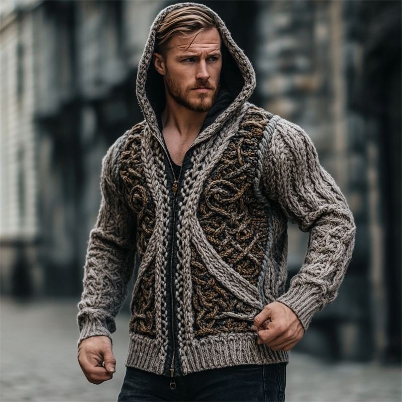 Men's Vintage Viking Celtic Chunky Hooded Cardigan