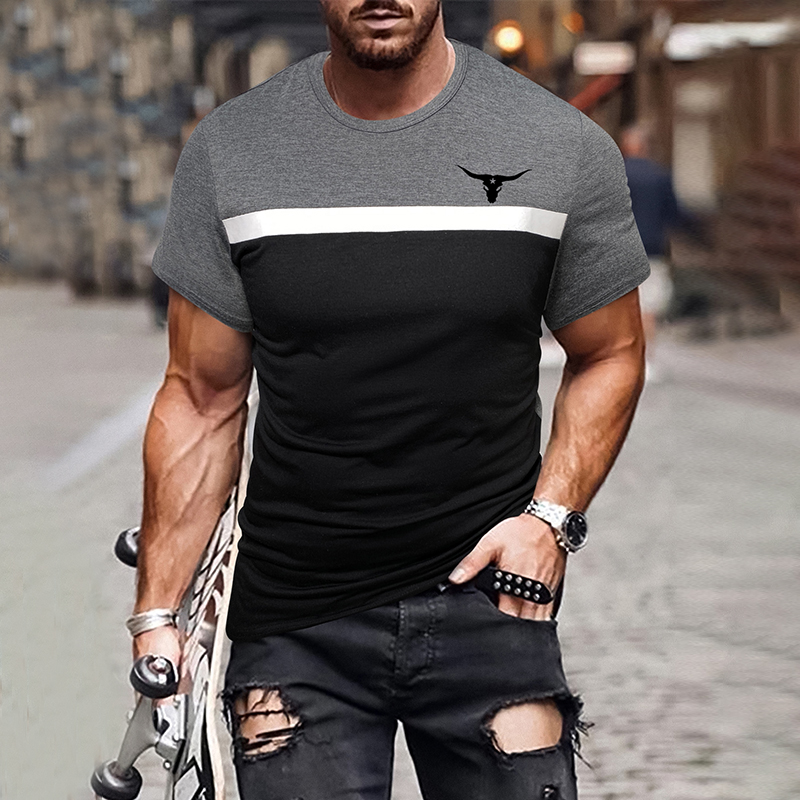 Casual Black And Gray Western Bullhead Print Short Sleeves T-Shirt