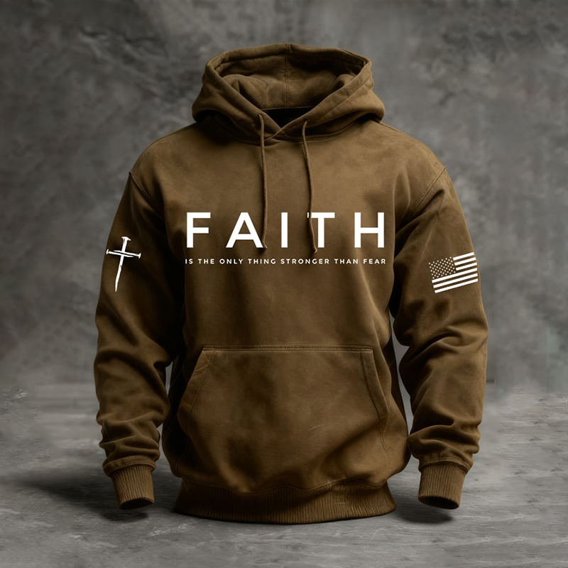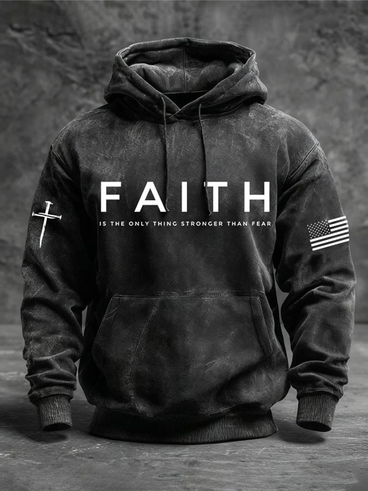 Men's Faith Is The Only Thing Stronger Than Fear Print Casual Hoodie