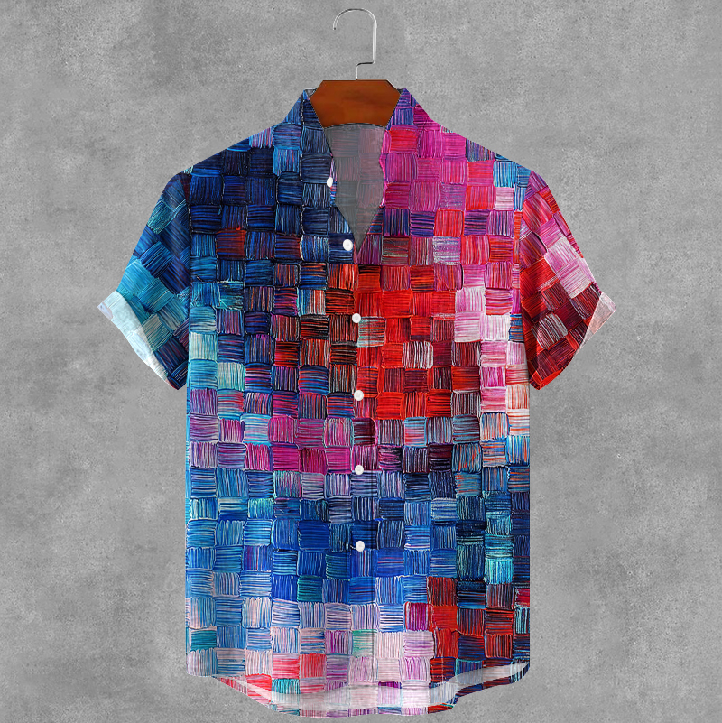 Retro Oil Painting Geometric Plaid Art Print Cotton And Linen Shirt