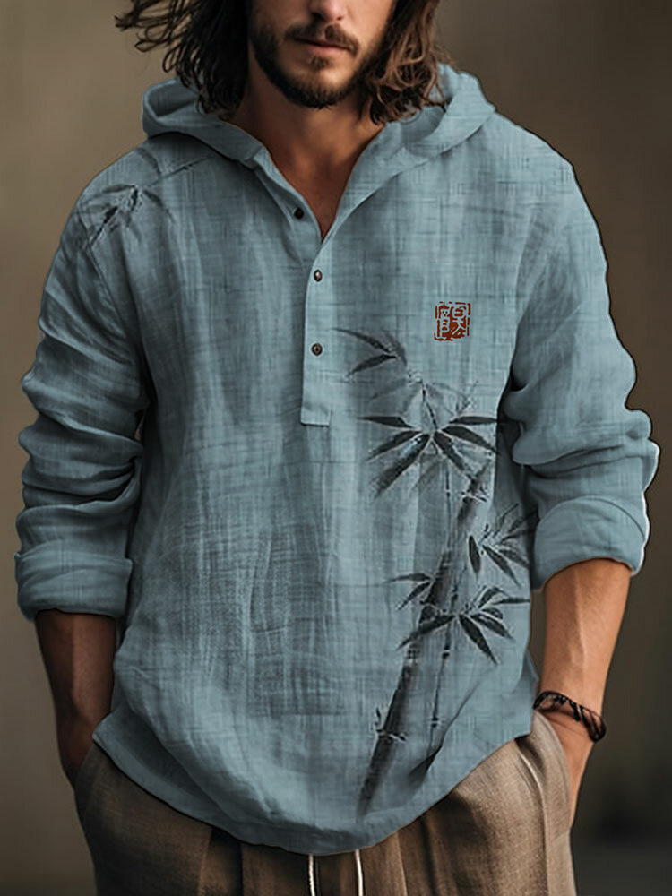 Simple Bamboo Japanese Art Linen Blend Hooded Shirt
